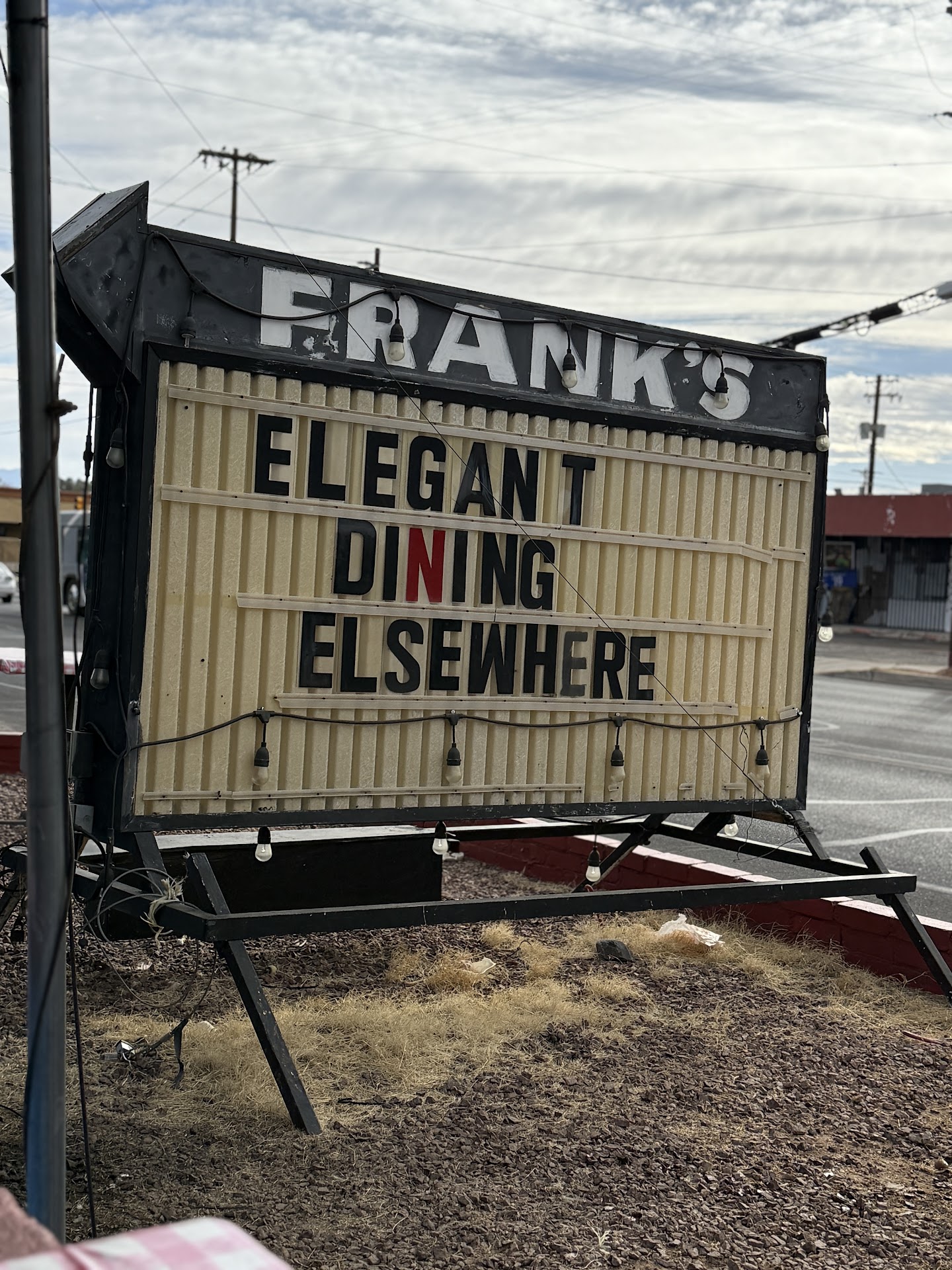 Read moreYes, looks can truly be deceiving. Frank's seriously lacks any snazzy curb appeal. If you're coming for the aesthetic value you're certainly not at the right place. Architecturally Frank's is beyond unimpressive. If however on the other hand you're searching for darn good food, you've just hit the motherload. I was immediately welcomed upon entry and advised to sit wherever I could find some room. And while crowded, the small dining room wasn't cramped to the point where there wasn't an open spot for me to sit and call my own. I've been meaning to get to this place for several years and just never made it until today. I normally would drive by and see that the parking lot is completely full, so I would skip it and go somewhere else. Today was no exception the parking lot was full but again there was room for one more. Frank's offers an impressively large menu selection with abundant variety. I elected to partake in the chicken fried steak, over easy eggs, hash browns along with the sourdough toast. The lag time from ordering to table presentation was minimal at best. My food arrived at what I considered to be record setting warp speed. My selection arrived hot, fresh and delicious, and visually appealing. I simply could not clear my plate as portion control at Frank's apparently doesn't exist. I would highly recommend visiting this Tucson original. Now I'm intrigued and I will have to come back for dinner next.