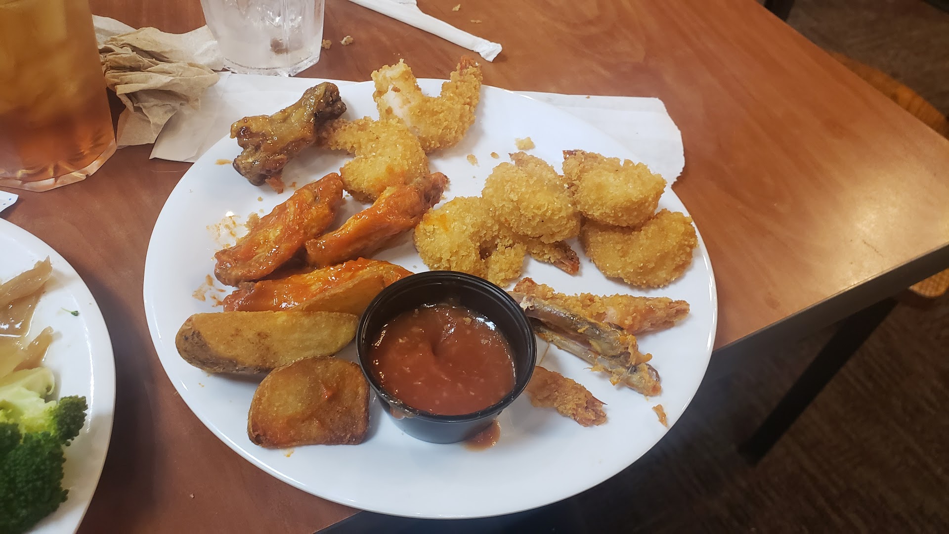 You walk in, and immediately the air changes. It’s thick. Oily. It smells like gravy, bleach, and moral compromise. You grab a plate that’s been through more trauma than most marriages, and you just… start piling things. Fried shrimp. Mac and cheese. Something that might be lasagna, or might be regret baked at 350 degrees.