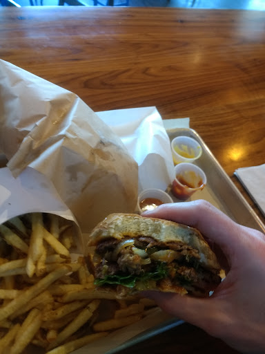 Ordered the lunch special; Burger, fries, and a drink for $9. The drink was self-service, which is no bother in my book. The fries were outstanding and they offer several dipping options (also self-service) beyond the traditional ketchup. As to the burger, ordered mine with lettuce, tomato, red onion, and their 'Graze Sauce'. The meat was tasty, had a good rich flavor, though had they cooked it a little less, I wouldn't have minded. The bun was fresh and held together well, which isn't always the case with a big, juicy burger.