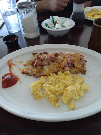 It is pretty convenient that it is a seat yourself restaurant, I quickly found a seat it was clean and the table that was appropriately set with place settings. I waited for 8 minutes before one young lady came and asked what I wanted to drink a massively signs hot chocolate topped with a decent amount of whipped cream I surely cannot complain about) waited for another 3 minutes until another young lady came and slammed a menu in front of me. It took approximately 7 minutes for her to make her rounds and take my order. She then remove the menu and walked away without saying anything.