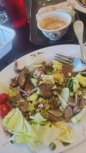 Read moreI had high expectations from all the reviews...sadly reality did not live up to the hype. I oreder 3 dishes... the steamed spring rolls, pad thai and yum nua. The spring rolls (we call them summer rolls in Hawaii), were not good at all. Big pieces of iceberg lettuce, flavorless shrimp and very little noodles. It came with a peanut sauce that looked a little lumpy and weird. Unfortunately it tasted odd too. It didn't have deep peanut flavor. It was very mild and blandly sweet. I only ate half and pushed my plate away. Next up the beef salad. This has always been one of my favorite Thai dishes... not here though. The beef was so over cooked and hard, I've had jerky that was easier to bite and I'm sure my jerky had more flavor. There were only a few tomatoes, no mint and very few onions. The "dressing" was hot and had no umami factor. No sweet, hot, sour, or savory factor. It was like hot,bland Italian dressing but with no flavor. I also only took a few bites and pushed it away. The pad Thai was the only thing that had the least amount of flavor, although I would give it a 5 out of 10. I did eat most of that. The waitress was very nice. She brought over a take out container and I didnt have the heart to tell her I wasn't taking it home. Just as I was about done eating my pad Thai a homeless gentleman came in and asked for any leftover food. I told him he could take the summer rolls and/or the beef salad. He took the summer rolls, looked at the peanut sauce and the beef salad and wisely opted out. I wanted so badly to like this place but the food was sad, flavorless and...