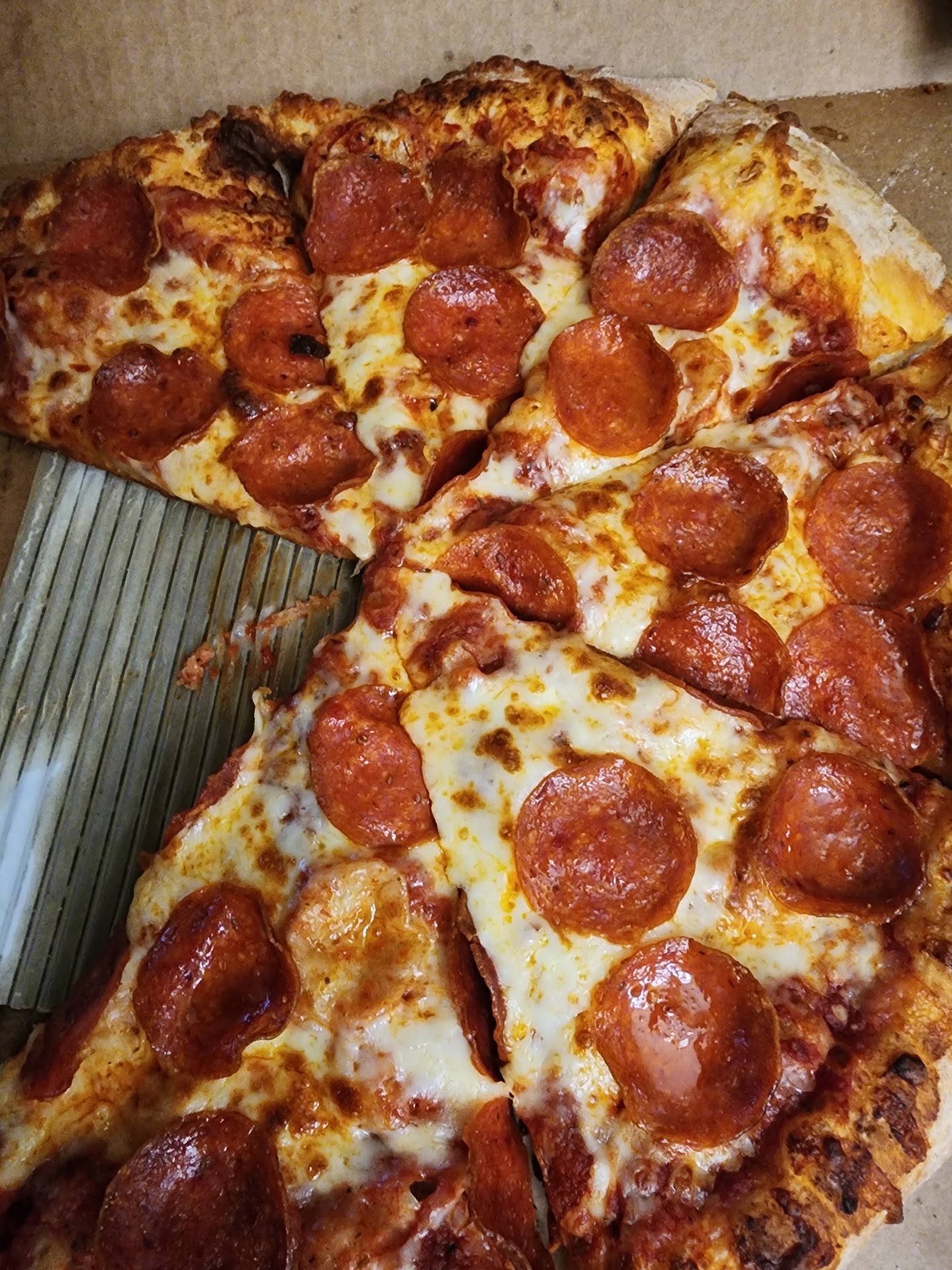 Read moreThis place has the potential to actually have good pizza. But never order delivery. On numerous occasions I have ordered pizza for delivery and always recieve it an hour and a half to two and a half hours later. Typically the box is hot from sitting in a warmer and the pizzas are cold to were the cheese is hard. When I pick up the pizzas I never have this problem. When I had spoken with the corporate representatives they stated that they were shocked and there's nothing they can do since it is an owned franchise. Each time I order for delivery, I always say I'm never going to order again and the same thing happens. The last time I called in an hour after it was delivered and some kid manager said we only have one driver and it will be a half hour to 45 minutes more. I was pissed at this point, I had already paid for the pizza, delivery, and a generous tip. And, I cant get that back. I think what kills me the most is I'm literally 3 minutes away and I could have placed 8 orders and picked them up by the time I recieved my delivery..... oh,... and they never have parmesan cheese. I truly understand food cost and contol,.. but to always be out of cheese is ridiculous for a pizza restaurant. This place needs improvement in management as well as with employees. Chef...