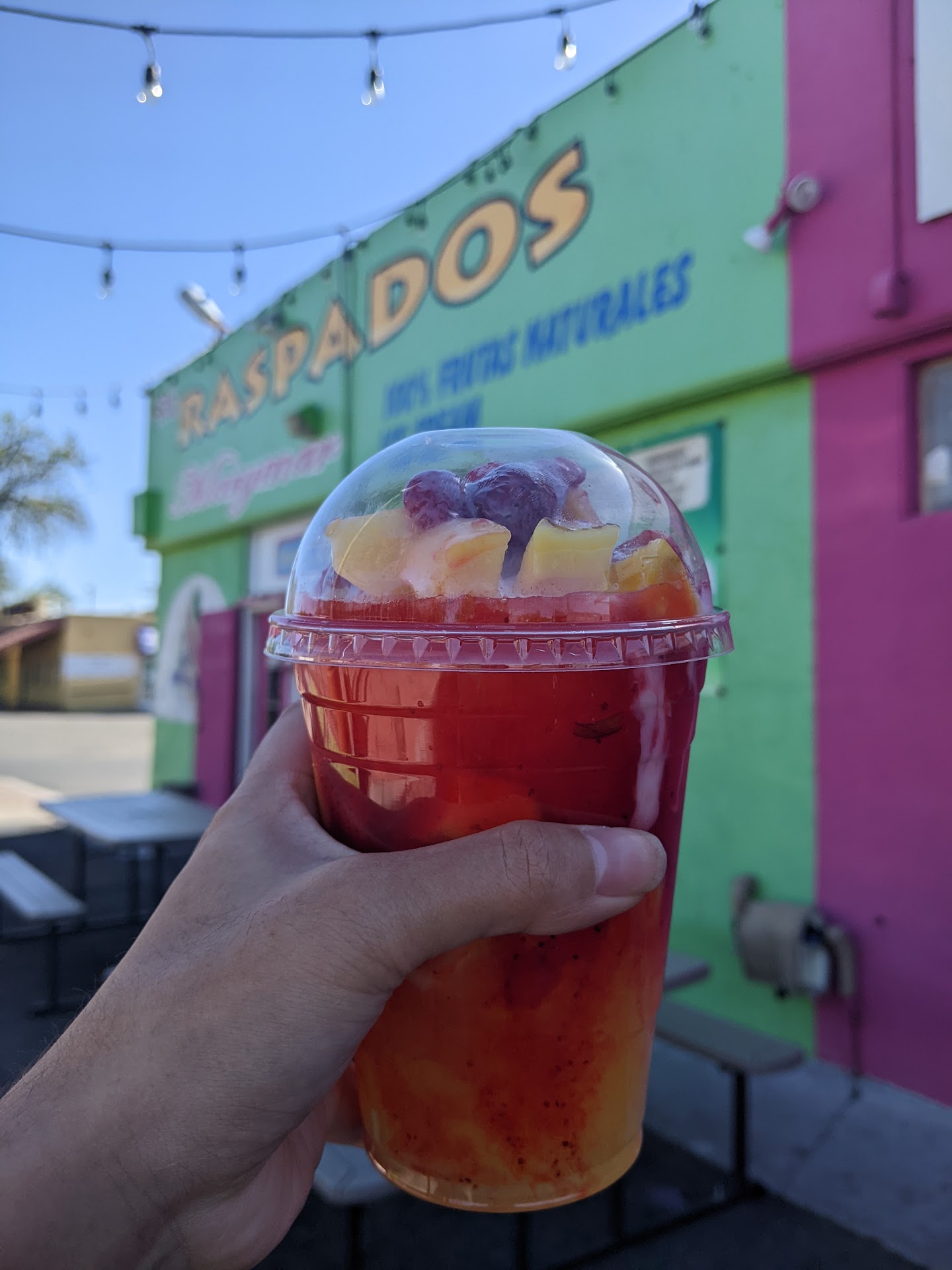 Their Raspados. Are. bomb-driggity!!!(flavored shaved ice) they have one with ice cream in it and actual fruit, sweet cream and raspberries or mango or even their famous "El Niño" for those spicy "Lechera" and sweet tamarind fans. (Tamarindo.)