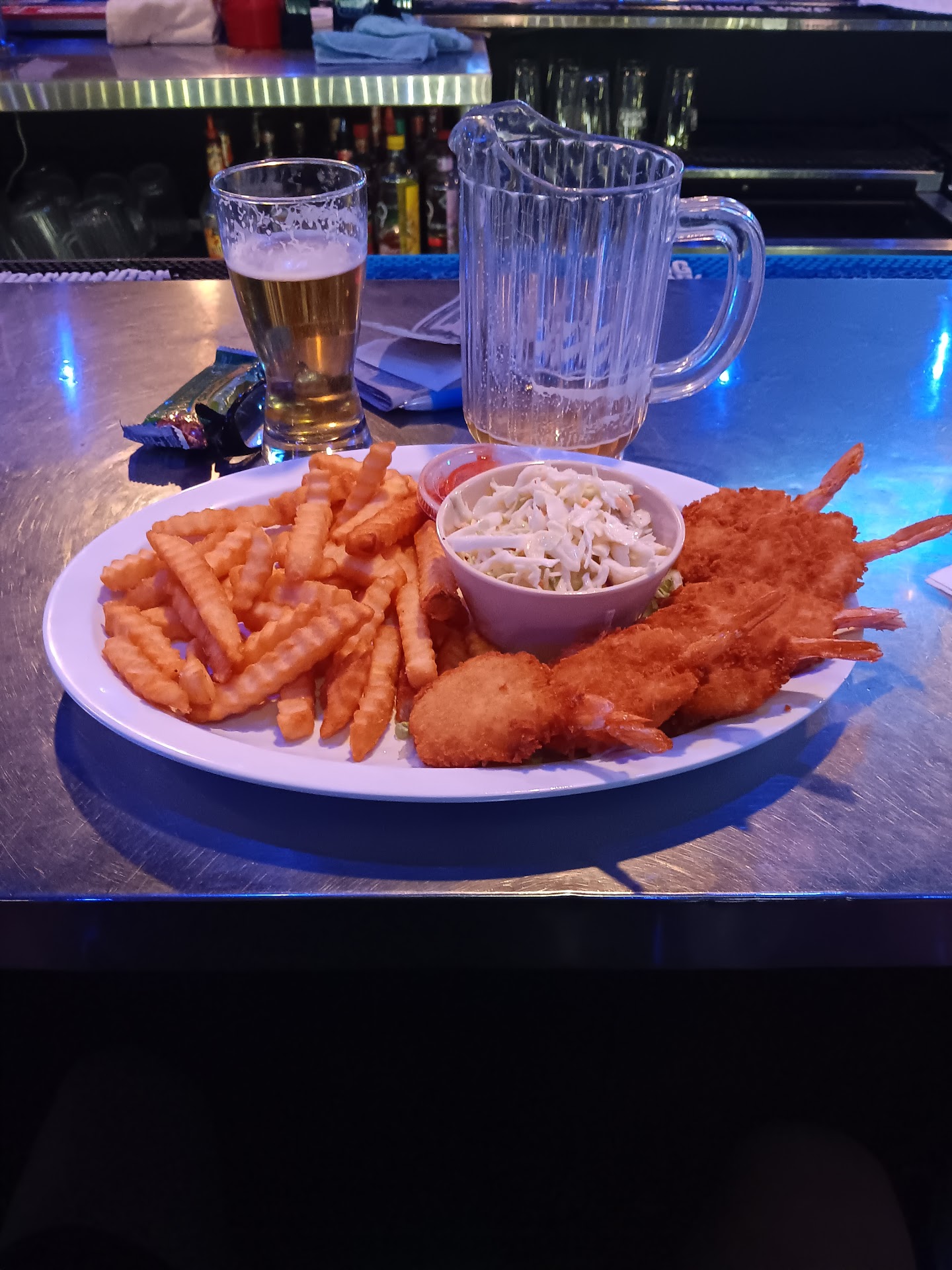 Read moreWe didn't stay long. We could hear the music through the walls before we entered. The bartender spoke to us as we came in. No one told us where to sit and since we went to eat and not drink we picked a table and sat down. After a few minutes since no one came to see if we needed anything I walked up to the bar to get a menu. About that time a couple at the bar started fighting. The female jumped up from the bar, knocking her stool over and they stormed off towards the back door. The bartender walked past me without speaking. My wife and I decided it wasn't a...