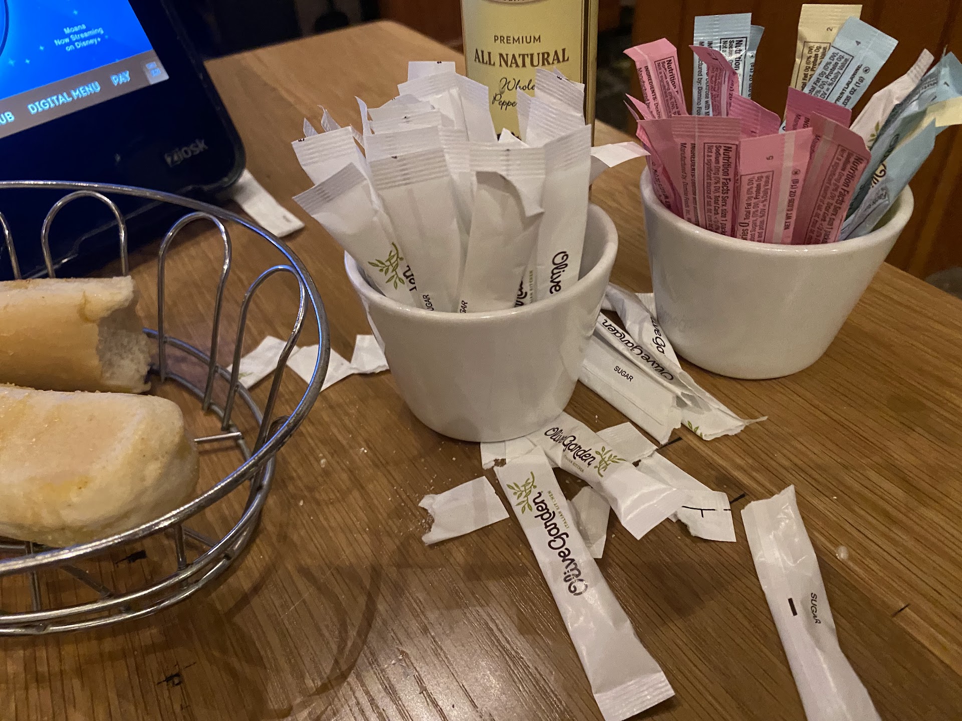 Ā Ā Ā Read moreOnce upon a time Olive Garden was a classy dress up date night venue. Sadly those days are now long gone, far removed and instead replaced by a mediocre culinary embarrassment masquerading as a fine dining establishment. Despite calling ahead, our advised wait time was significantly off, the bratty princesses at the front desk needs to go to charm school and get a clue. The hostess princess seemingly have mastered disingenuous lip service to a fine art, all at the expense of genuine customer service. Once seated we had to ask for the table to be re-cleaned as it was noticably sticky. Whoever pretended to bus the table prior to our arrival clearly has some lack of pride issues. My menu was filthy , the menu had dried and curtsy old food debris all over it, our server became noticeably annoyed and perplexed when l asked for a clean menu. I sent the breadsticks back immediately upon arrival, another dud offering, they were cold and hard, if the server wouldn't want them she shouldn't feel obligated to serve them. By this point our server seemed visibly annoyed with us, thankfully it was a lesson in mutual frustration. We placed our order and the food arrived at what l would consider a decent pace. Obtaining water refills proved problematic, again adding to our servers ever increasing levels of annoyance. We felt our food was decent. It arrived hot, fresh and edible. It really lacked in the quality and flavor department from previous visits, the food was simply unimpressive, definitely not their best effort. Eating is a life sustaining requirement, eating out is not a requirement for life. Dining out is about the food, the ambiance and the service. Sadly we just weren't impressed. Based on the dismal failures of our recent visit, I simply have no desire to return and subject myself to this instatutional failure. I'm really unconcerned if a server has one other table or twenty other tables, l only have one server and I expect to be warmly treated as a welcomed attitude free valued guest Sadly that simply wasn't in the nights mix. Based on our recent misadventures, this is not an establishment that l could ever recommend visiting. Hopefully something nice will move into this building next, it's really a great location capable of far...