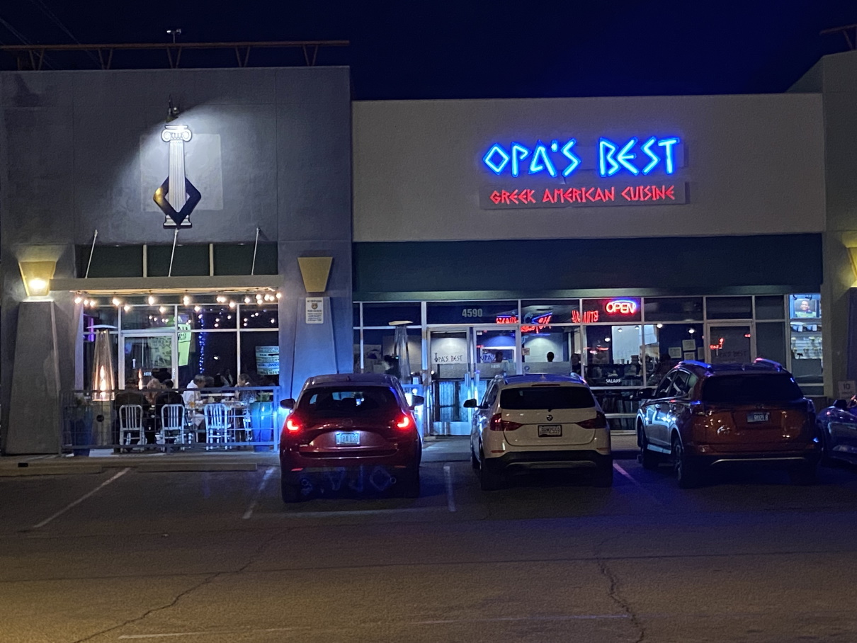 Read moreGreek is hard to find in Tucson , but Opa's has three casual stops throughout the city. I dined on the east side, which is in a strip mall reminiscent of the 70s or 80s . The interior is cute, the tables are spread out, and I was greeted quickly by my waitress. I'm a wine person, and the menu is small, but I enjoyed a decent glass of Santorini Assyrtiko for $8. They start you with a pita plate, which includes fresh hummus, tzatziki, and crisp cucumbers (this would be a meal enough for me! The pita is very warm and soft, and the dips are very fresh). The menu includes a wide range of platters, gyros, and authentic appetizers. I chose the grilled octopus for my appetizer, which ended up being enough for a lunch entree (I have a very light appetite). I was surprised to see the octopus chopped up, as I'm used to the presentation being the entire tentacle. It seemed a bit tough/ chewy, but it was delicious enough for me to clear the plate. The service was appropriate, and the waitress was very friendly and accommodating of my very casual stay. If you're craving Greek while in the Southwest, Opa's will check the box without straining your wallet. I give 4 stars because it isn't a 5 star experience, but it is definitely worth my time and money, and I'm SO glad to finally have a Greek option in Tucson (this place has been closed for dine-in for a lengthy time due to COVID, so I'm thrilled that it came up on Google as "open" again). Check it out, and don't judge this book by its cover! (Reviewer's note: I am a NY-er who spends about 1/4 of the year in Tucson with family and business. While I'm not native to Tucson, I consider this my second home and do a significant amount of dining out while in...