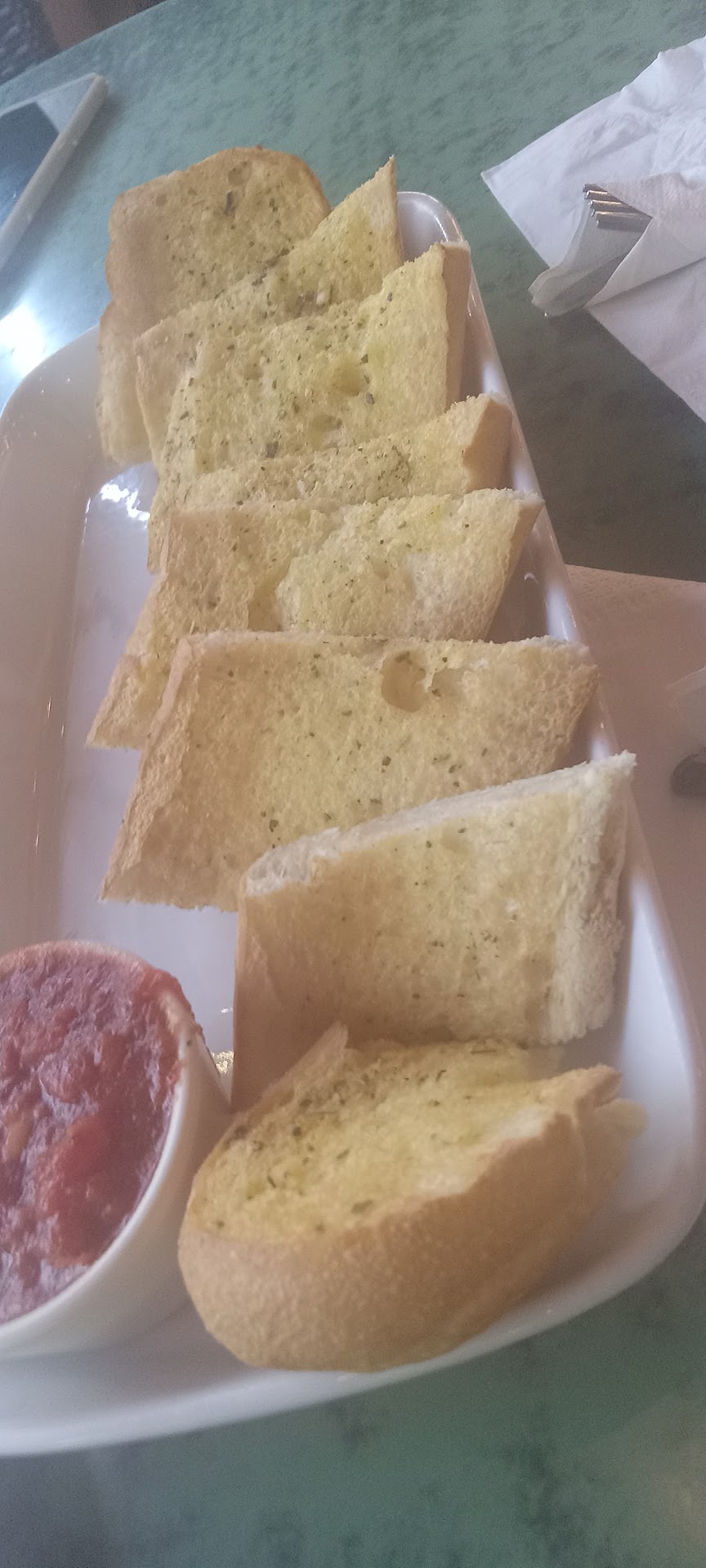 He suggested the chessy garlig bread with a side of marna sauce to get us started and we took him up on this - the highlight of the evening. However, when it arrived we did not have out set ups and there are no napkins on the table. Well, the bread is a little gresy and it took some effort to get his attention.