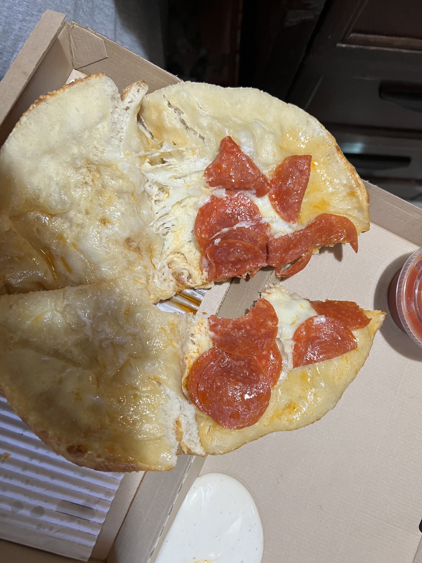 Read moreUPDATE FROM 1 TO 5 STAR unable to go back in right away as we were out of town, we went back about 4 days later and we're fortunate enough to get the same manager, Amelia, We explained to her how our experience had been and what the food was like and she was very sympathetic and empathetic and willing to credit or remake the food with no hassle at all. We definitely recommend this restaurant as their policy clearly concerns customer satisfaction and their staff represents that. The location is clean and the staff is friendly and helpful. The only complaint I have is that regardless of the number you call, you are passed on to a call center. When I called, the representative placed me on hold (without asking,) to contact the location in question and not only never got back to me but disconnected the call. Original review Me and my wife order P’Zones online; we each got extra pepperoni and extra cheese and this is what they look like… I don’t understand how this was worth $9 each after tip and tax. Come on Pizza Hu, get your stuff together. Definitely will NOT be...