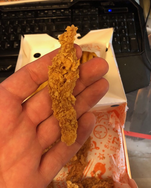 I kindly asked the order person what would be quick as I was on my lunch with limited time and I went out of my way to visit. She suggested tenders and so that was my purchase, the spicy variety.