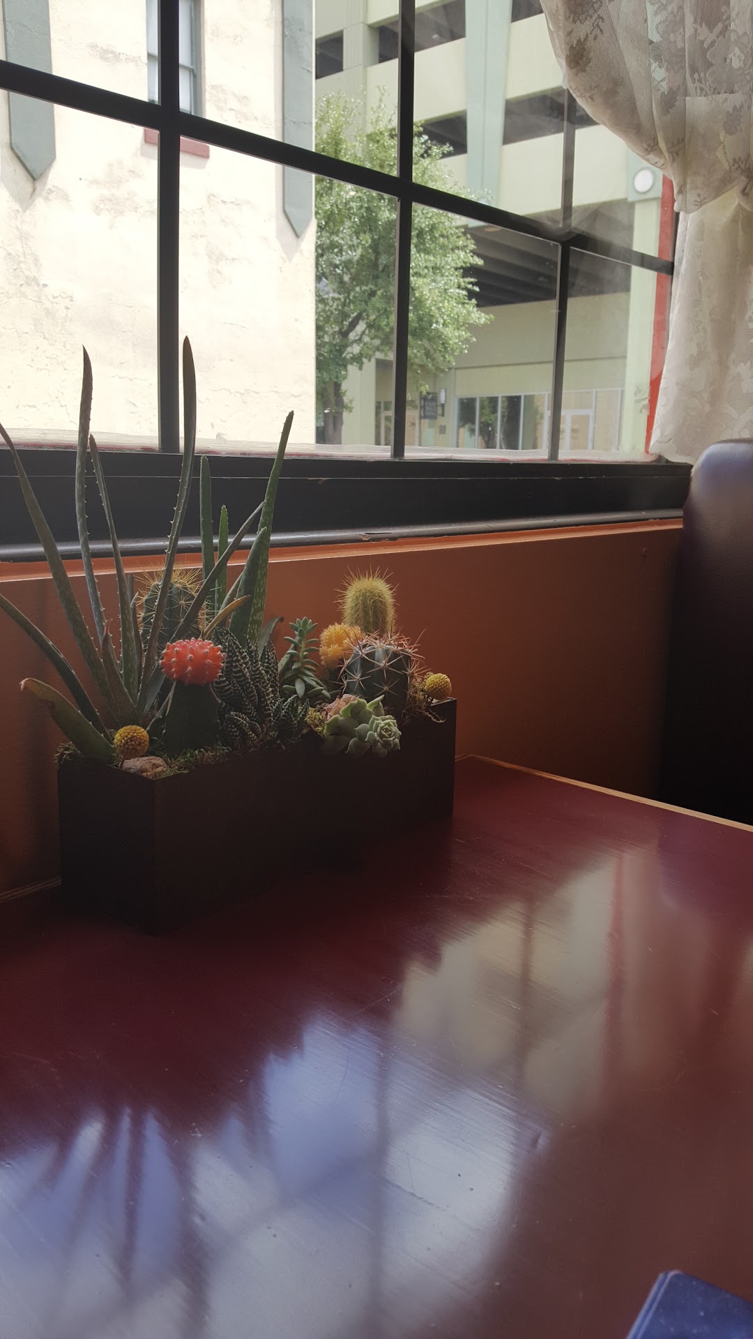 The view isn't great, being in the middle of town, but they've combated that with trays of desert plants next to the windows (see photo).