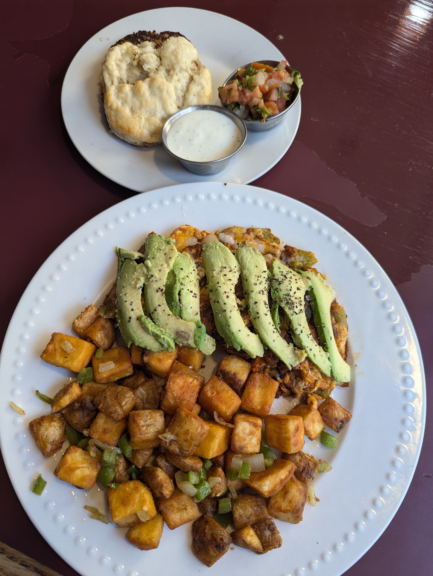 Most of our group of six ordered breakfast at 11am. Burritos and breakfast fries were great, including the vegetarian option. The Avocado toast with bacon would make a great breakfast by itself for a lighter appetite.