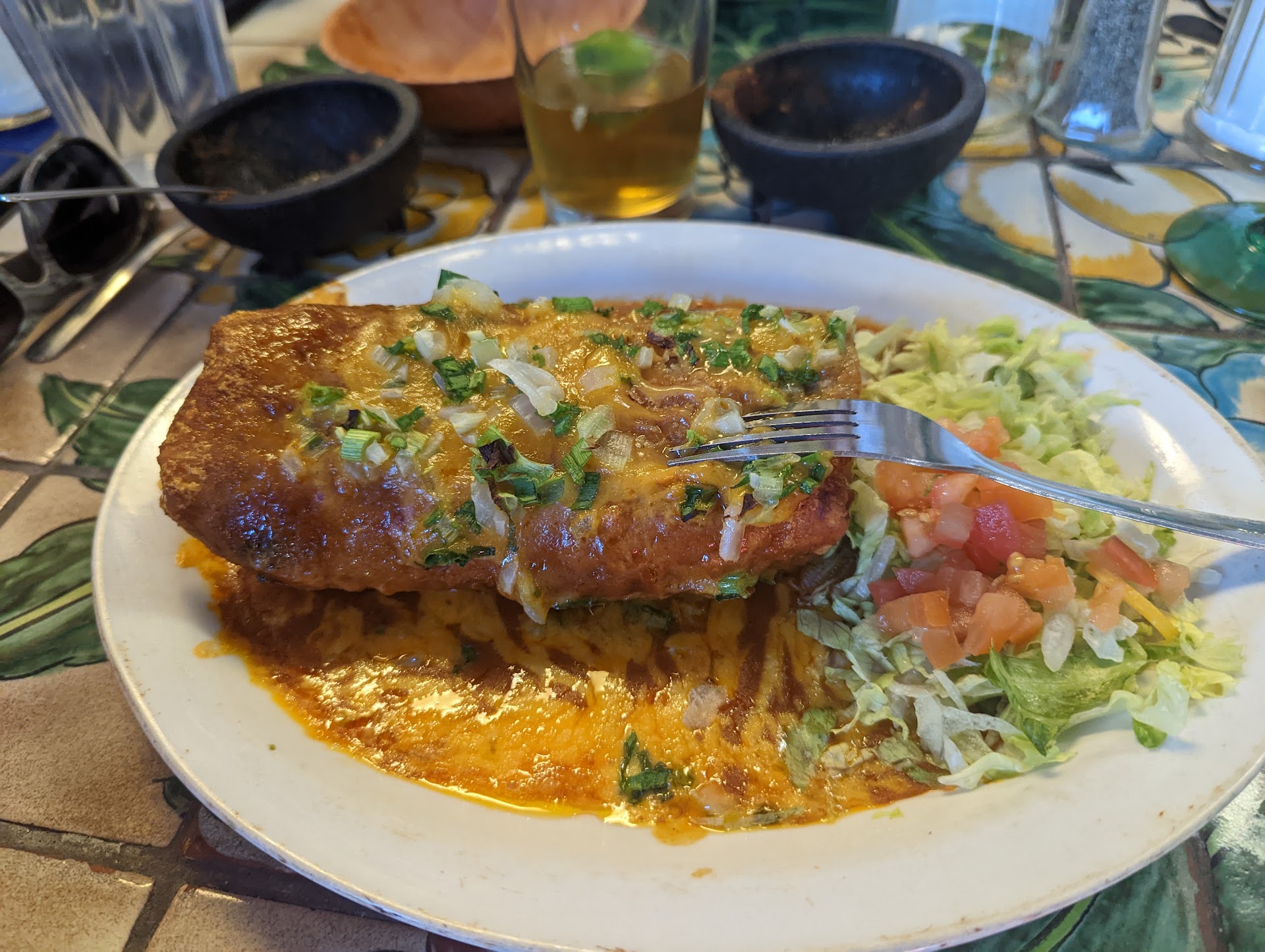 In all honesty, I think a lot of this has to do with the food that I like. I like chimichangas and I just don't like the soggy chimichanga covered with orange sauce anymore. I like that deep red chili sauce and where the edges of the chimichanga are still coming out a little bit so they're still crunchy. My favorite place to get them in Tucson, or anywhere really, is it place called La Olla up in Marana. Check out my other review and compare the picture to the picture of the...