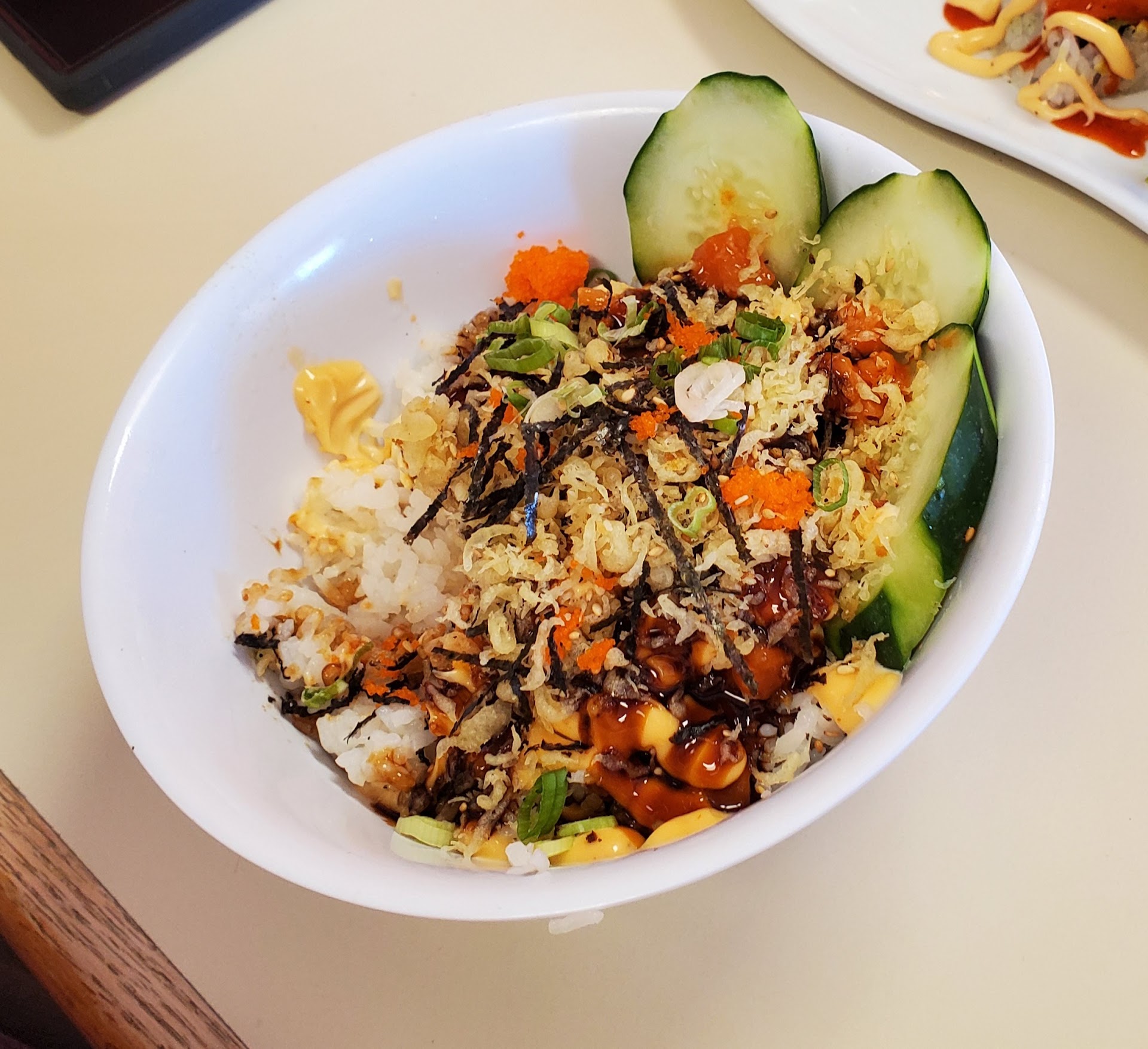 We ordered Tan Tan ramen, spicy tuna-don volcano style, a California roll, and gyoza. The Tan Tan ramen was pretty good, better than I expected it would be, as it's hard to find this ramen in Tucson that comes anywhere close to the flavor in Japan. The spicy tuna-don volcano style was pretty good as well according to my wife as was the California roll. I think the gyoza was not as good as it could have been but was okay.