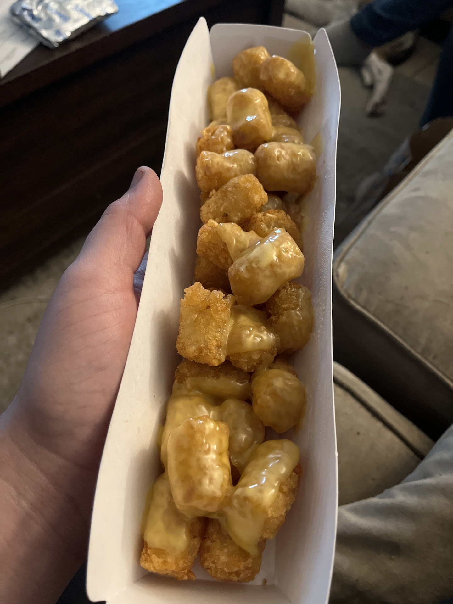 We got our food and left. The corndog was hard and luke warm, I could tell it has been made a while ago. And the hot Fudge sundae had no hot Fudge on the whip cream! They literally couldn't spend 15 more seconds to make it look like the photo?