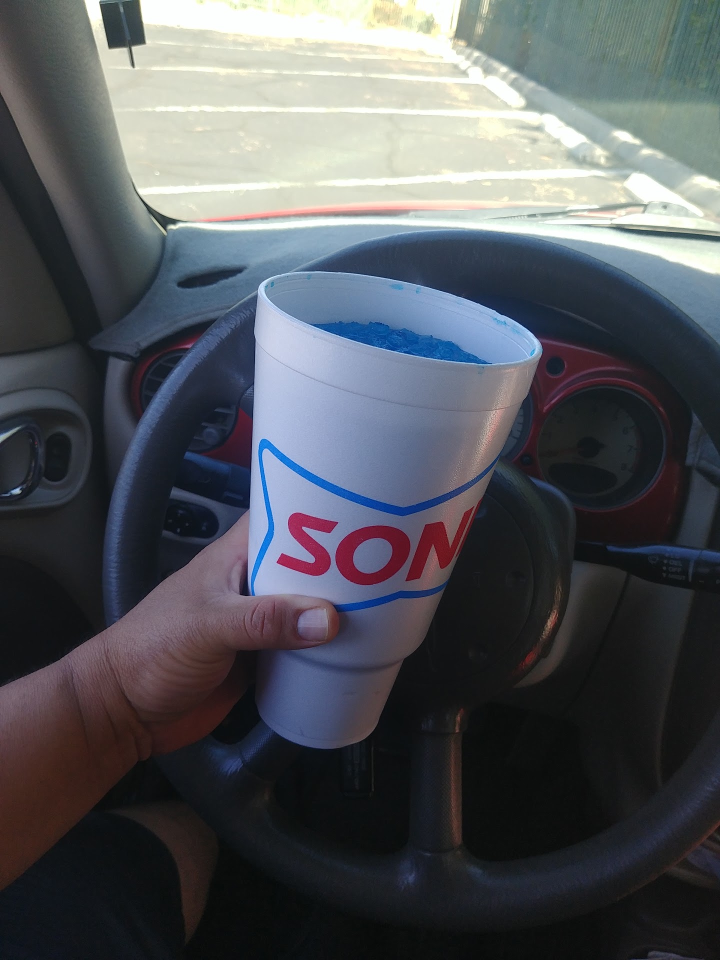 Read moreI've been going to this sonic for about 2 years now it's right by the recording studio I frequent and I always stop by, park and grab a 32oz Grape Slushy with Nerds. This Saturday (07/12/25) 9:50pm I was in a bit of a rush so I ran through the drive through. BIG MISTAKE. It was only me and one other person in front of me waiting by the drive through window. They take a little while to answer which I will say in all honesty is normal for this sonic but I can usually forgive but i'm in a rush today. I finally order my drink pull up and wait. I see my drink in the guys hand behind the lady at the window and they are just chatting away with no urgency. He hands her my drink and I watch her as she stirs it or so I thought. Then I get my drink and rush over to my appointment. I get there take a sip and just straight grape syrup so I open it up and look and they didn't stir my slushy like at all. It was pure white on the top and I bring my straw up from the bottom sure enough all the grape and nerds are sitting at the bottom. I can't leave so my girlfriend goes back to get it stirred. They told her oh we can't take it back but here's a plastic spoon. My girlfriend asks you want me to stir it? She goes yeah you really got to get in there as well just really stir it around good.... It's a full thick 32oz slushie sonic how are supposed to stir that with a small plastic spoon thats your job not mine. She comes back to tell me the bad news and deliver my spoon and unstirred drink. I dont want to make her go back so angrily I stir as much as I can and even after like 10 minutes most off the grape is at the bottom still its now a light purple color (usually deep deep purple) but just still tastes bad and I'm at a business I don't have anything to help me out. We call the sonic and ask why what happened and they say well I'm sorry bring it back and we'll stir it for you. Well we already did and you refused so no thank you hung up and threw my drink away.