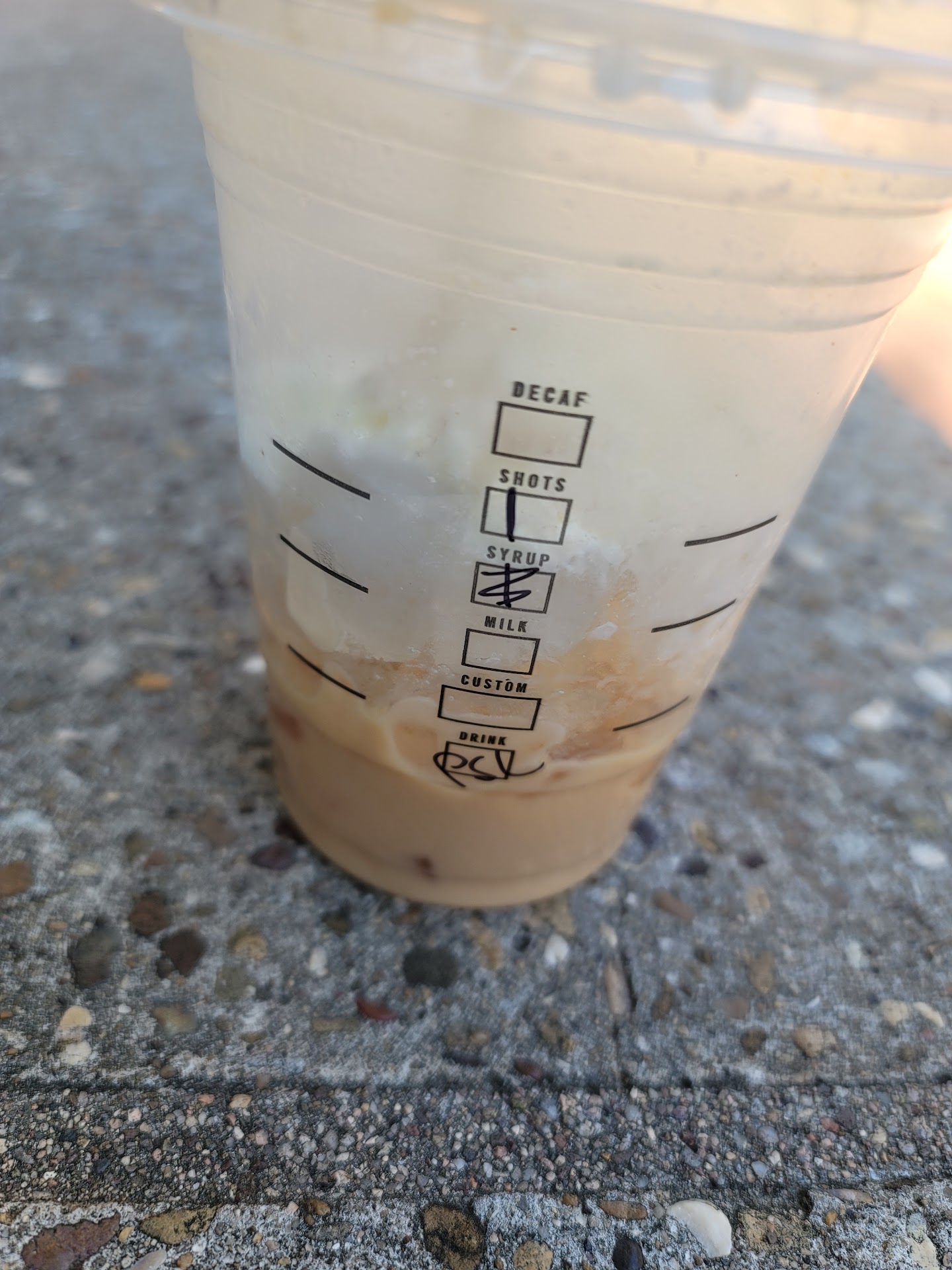Read moreI always go in and got used to the long waits and seemingly uninterested behavior but today I ordered something different, usually I order a chai tea latte but I decided to get a pumpkin spice lattes with an extra shot of espresso (exactly how I said it as I ordered it), and ended up with only one shot of espresso in the whole drink (when there was supposed to be 3 since a grande comes with 2 shots naturally + I ordered a 3rd shot to be added). I noticed the problem immediately and tried it anyway, but it was just sugary milk, so I went back in immediately and asked if an extra shot was added. The guy who I saw putting the spice on top and gave me the drink said he didn't know cause he didn't make the drink, and the only other lady who could've made it just stared at me and didn't do anything. I didn't want to start a whole fuss so I ate it and drank the drink but thoroughly did not enjoy it and am frustrated with how I was treated and people acted like I was insignificant and invisible. No problem solving was attempted, they just wanted me out of their store so they could keep doing their job as minimally as possible. This was a waste of almost 7$ and makes me not want to go back to a starbucks, though based on past experiences I know not all locations are as awful and careless as this one. Awful experience and wildly unsatisfied with a bad taste in my tongue left from their...