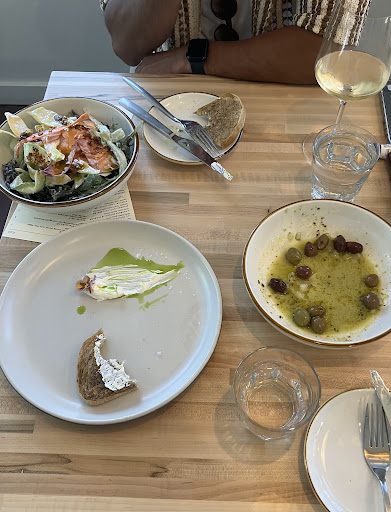 Read moreThe food and vibe here was so good that we devoured our dishes and forgot to take a photo that did it justice! We had the aguachile olives (briney, citrusy, slightly spicy, salty), bread and butter (the butter had a delicious chive oil on top), and shaved vegetable salad (crisp, crunchy, creamy, sweet, savoryâthe dressing was a lighter, elevated ranch). Portions were perfect to share between two people, it all came out quickly, and the food menu complemented the drink menu (which featured a whole spritz section!) We asked the server how long they had been open, and we were surprised to hear it had only a couple weeks because the service flowed so smoothly. Itâs located in a sweet stucco house off Broadway, and they have beautiful indoor and outdoor seating, but if you want indoor seating, Iâd recommend coming on the earlier end. Definitely a great spot for happy hour, dinner, weekend outdoor hang, or a...