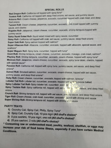 Read moreKelly is amazing. My family and I have been ordering sushi here for over a year. We get it at least once a week. My kids love saying hello to Kelly and her dad who are both friendly and outgoing. They work very hard and are well loved by all their customers. Not once have we ever been disappointed. The sushi is fresh and tastes great. My kids love the miso soup, and Cali rolls and tofu nigiri. Kelly even offers suggestions when we want to mix things up. We are loyal customers and I honestly think this little gem of a restaurant is the best sushi in Tucson. They have handled the pandemic very well with take out policies in place for now but that doesn’t diminish the quality of the food you get from...