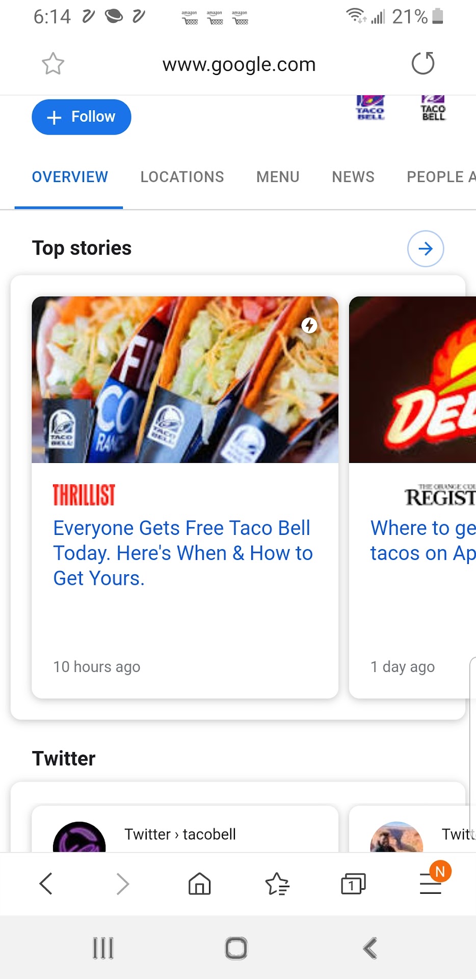 Read moreI like going this Taco Bell because they have my empanadas only before 6 p.m. very rarely do they have any left at 7 and it's like pulling teeth to get them to make any more but my favorite thing there is in enchiritos and they make them any time I come in. They don't have them on the menu they haven't had them on and menu for over 20 years but it's a secret little enchilada made of cheese beef and chicken that if you want them they will make them for you upon your request I love these things and I wish they would put them on the menu maybe then again my being the only one knowing about them to get made just specially for me makes it great I'll keep my secret to myself Taco Bell if I see him show up on the menu it's because I know you read this and I...