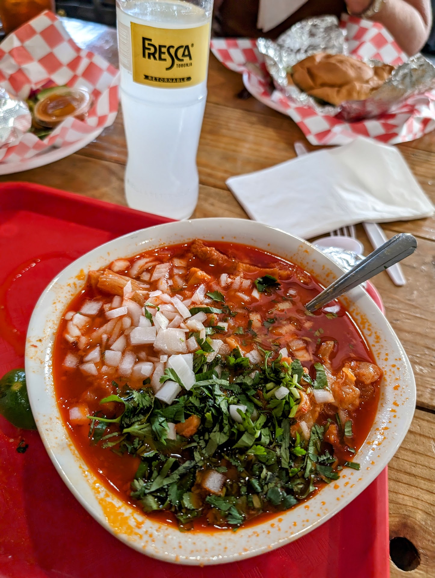 The Food: Simply put, the food was magnífico! My carne asada torta was a symphony of textures and tastes. The perfectly grilled steak was tender and juicy, nestled within a soft, pillowy telera bread. Each bite was a delightful explosion of savory flavors, enhanced by the fresh pico de gallo and creamy avocado. My dining companion raved about the red menudo, a rich and flavorful broth packed with tender tripe and hominy. It was the perfect comfort food, warming us up from the inside out. Every mouthful was a testament to the quality ingredients and skilled cooking.