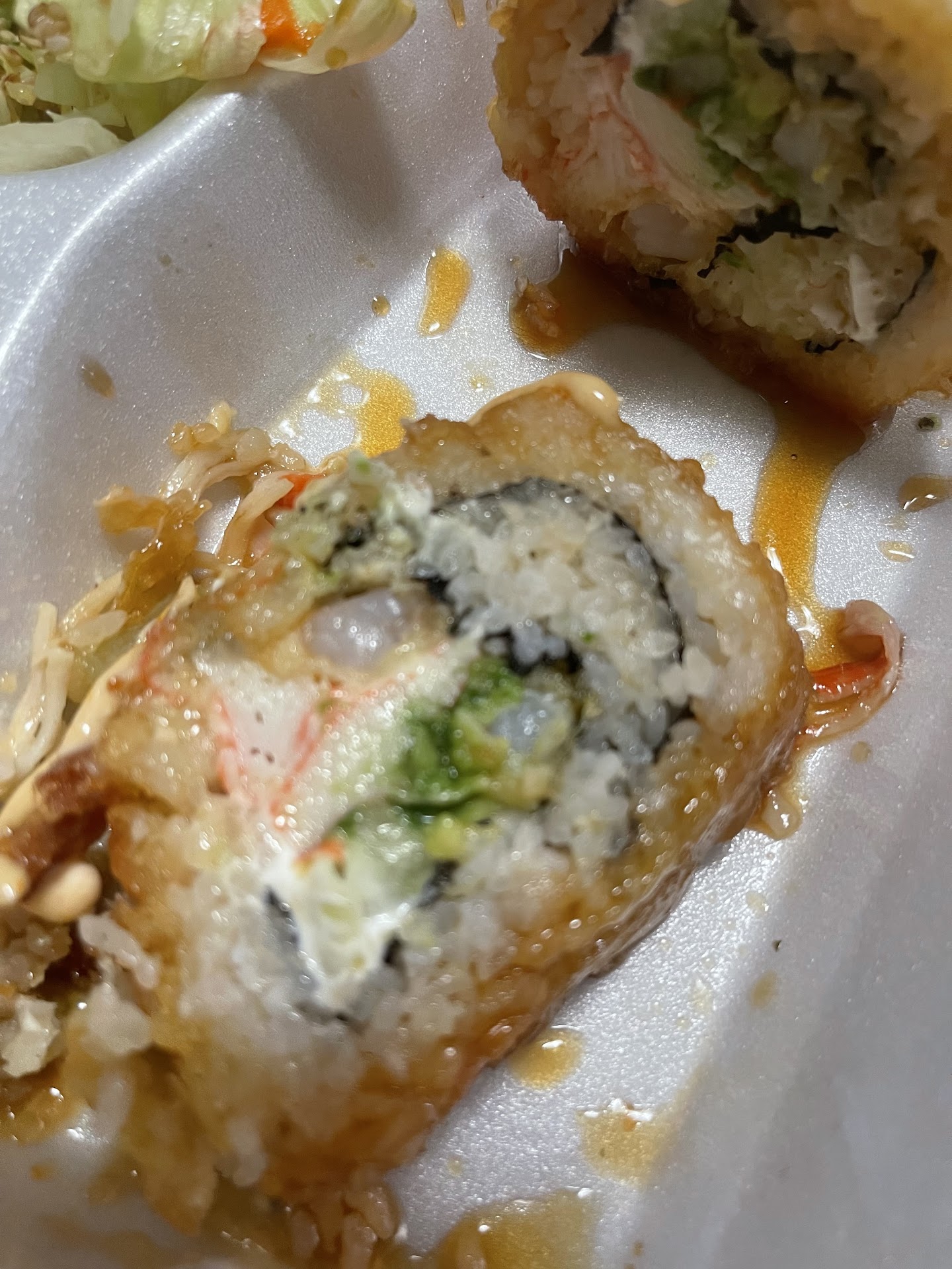 Read moreIf you are looking for sushi you are looking in the wrong place, this place sales something I called Rice Chimichangas sumerged in a sweet sweet super sweet glaze that all you can taste is ? Of corse sweet glaze. I remember it was good sushi when first opened but that was a few years back . Today it’s not worth anymore . This is the 3rd try I gave them in last few months and I think they need bad reviews to pay attention to what they are selling .14 buck a roll and...