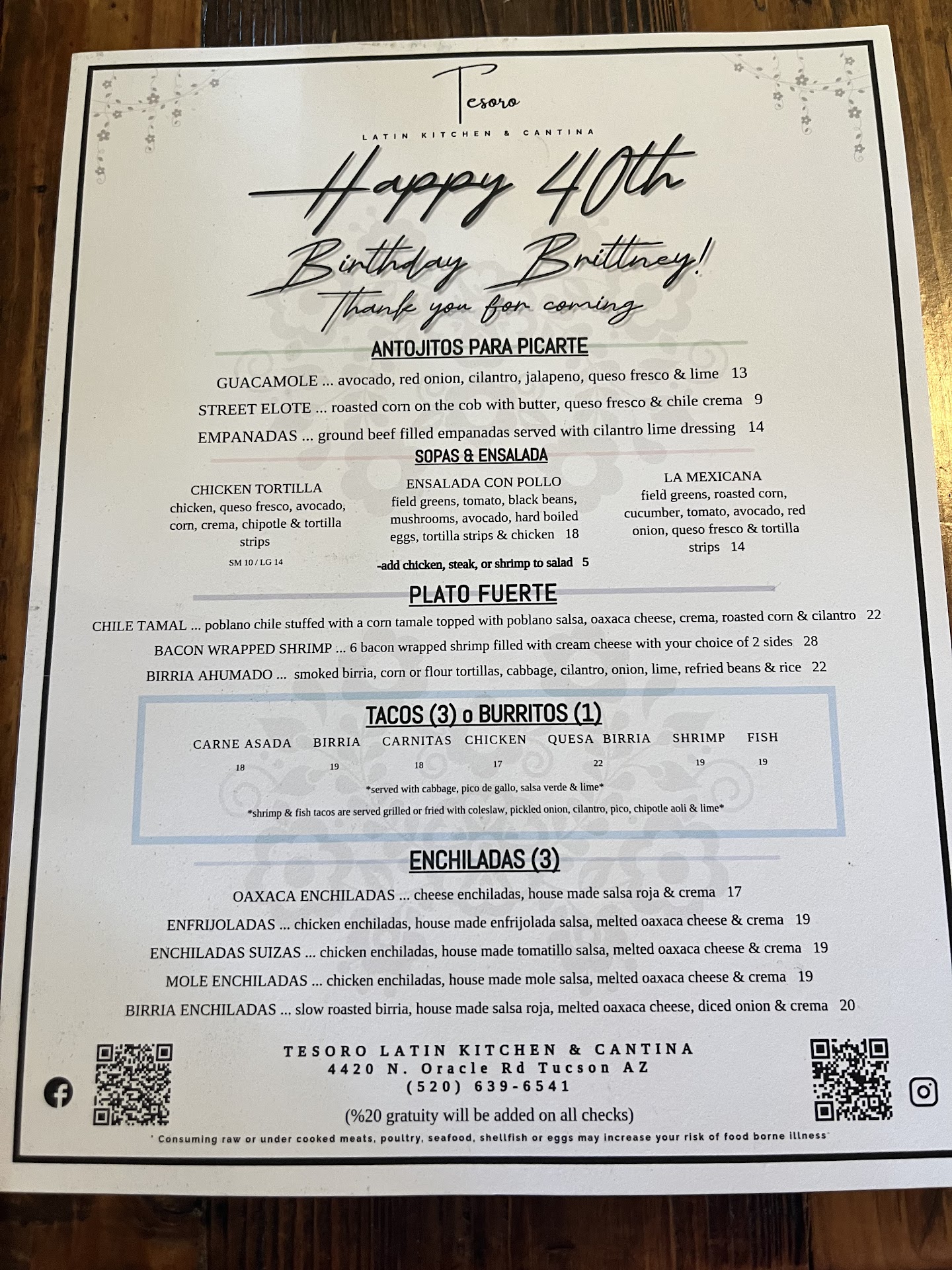 We called ahead and clarified that we were put on the waiting list when we arrived. The hostess told us we can have a drink at the bar while waiting on the table. After about an hour of waiting on a table and seeing the waiting area clear out, the hostess acknowledged she took me off the list when questioned. She then began to argue that I was not on the list because I requested to be taken off of the list per a conversation that I had with her, which could only have occurred during the time I was in the male restroom. I did not have any other conversation after I told her we will wait for our table while we have a drink at the bar. The table we sat at was directly behind her (10 feet away). She could have asked for clarification at any point if she was confused. It’s unfortunate that I had family from out of town that I brought to this establishment instead of anywhere else in Tucson but the quality of service was poor from the hostess. The waitress was nice. We paid our bill in full and she was tipped. We ended up having to sit at the bar when the hostess responded with “I can add you back to the list”.
