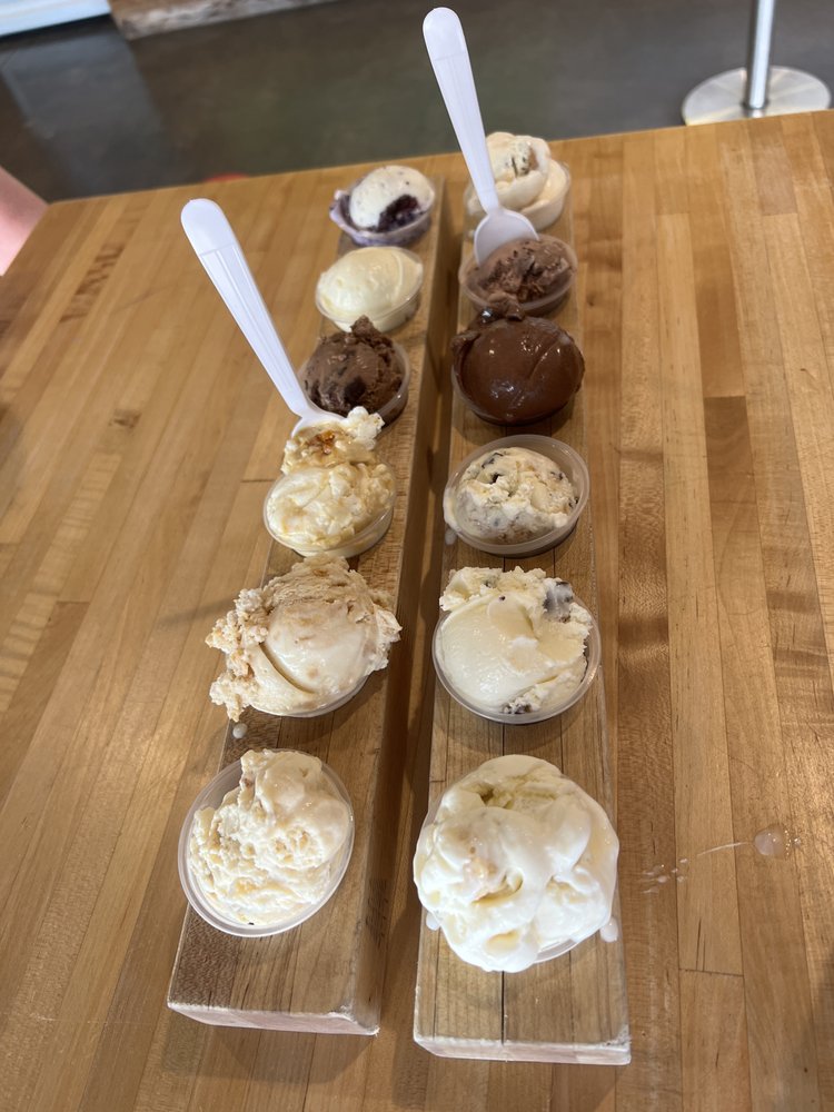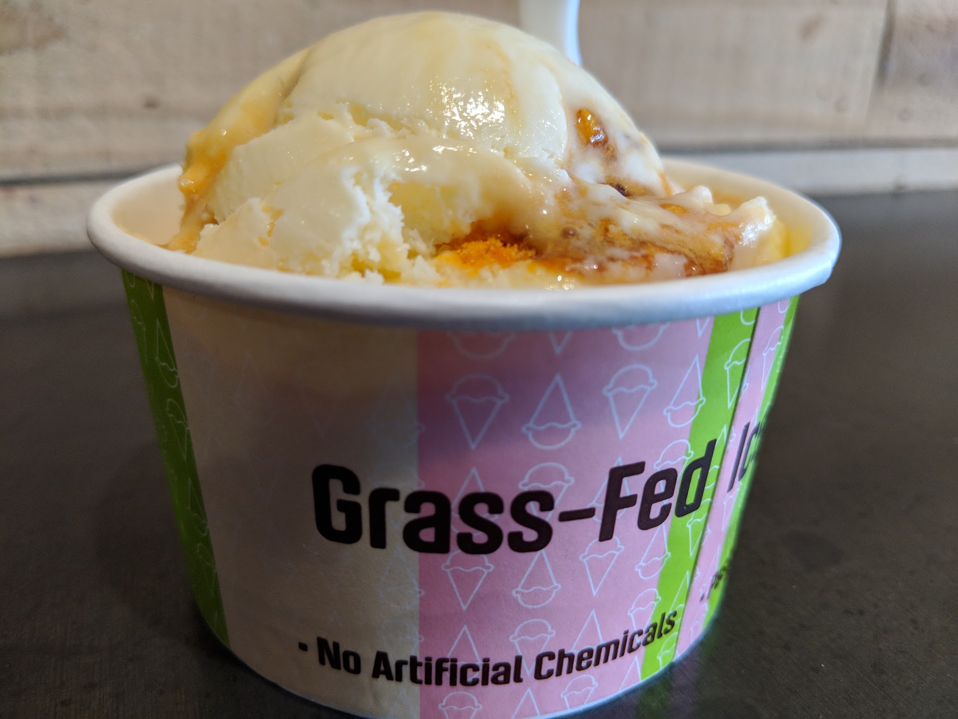 sweet cream honeycomb- Sweet cream infused with honeycomb pieces fresh from the farm down the street. This is unlike anything I have tasted before! The crunchiness supplements the sweet ice cream