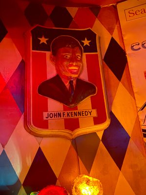 Read moreThis is my second time, maybe my third, at this shelter... looks like a mortuary from the outside. And inside? It's like a red neon light bulb having a nervous breakdown. John F. Kennedy error decore, whatever the hell that means, and a pool table sitting in a room upper floor, and a other room full of cancer stickers, just sucking away. But the real gem? The horseshoe bar. It’s got that charm—old vinyl seats so sticky they’ve been there since ‘52. Hell, they’ve probably got a history of their own—at least one that might kill you faster than the booze.