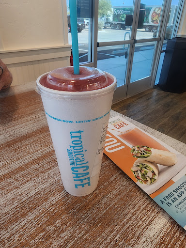 I was on my way back to the hotel and decided to try this place out as I did not care to cook. When I ordered I had no clue what to get, I have never been to a tropical cafe before, the young lady gave me suggestions that I went with. When I pulled up she was polite and smiling, hard to find now a days. After she took my payment another younger gentleman gave me my food and thanked me for my service (I was in uniform) also something you don’t typically get in fast food. When the young lady returned and handed me back my credit card she apologized for the wait but honestly I waited a pretty normal time, didn’t even think I actually waited that long for an apology. When I got to my hotel the smoothie was sooooo good and my food that she suggested was also amazing. Thank you for your amazing customer service and food, I wish I would have caught...