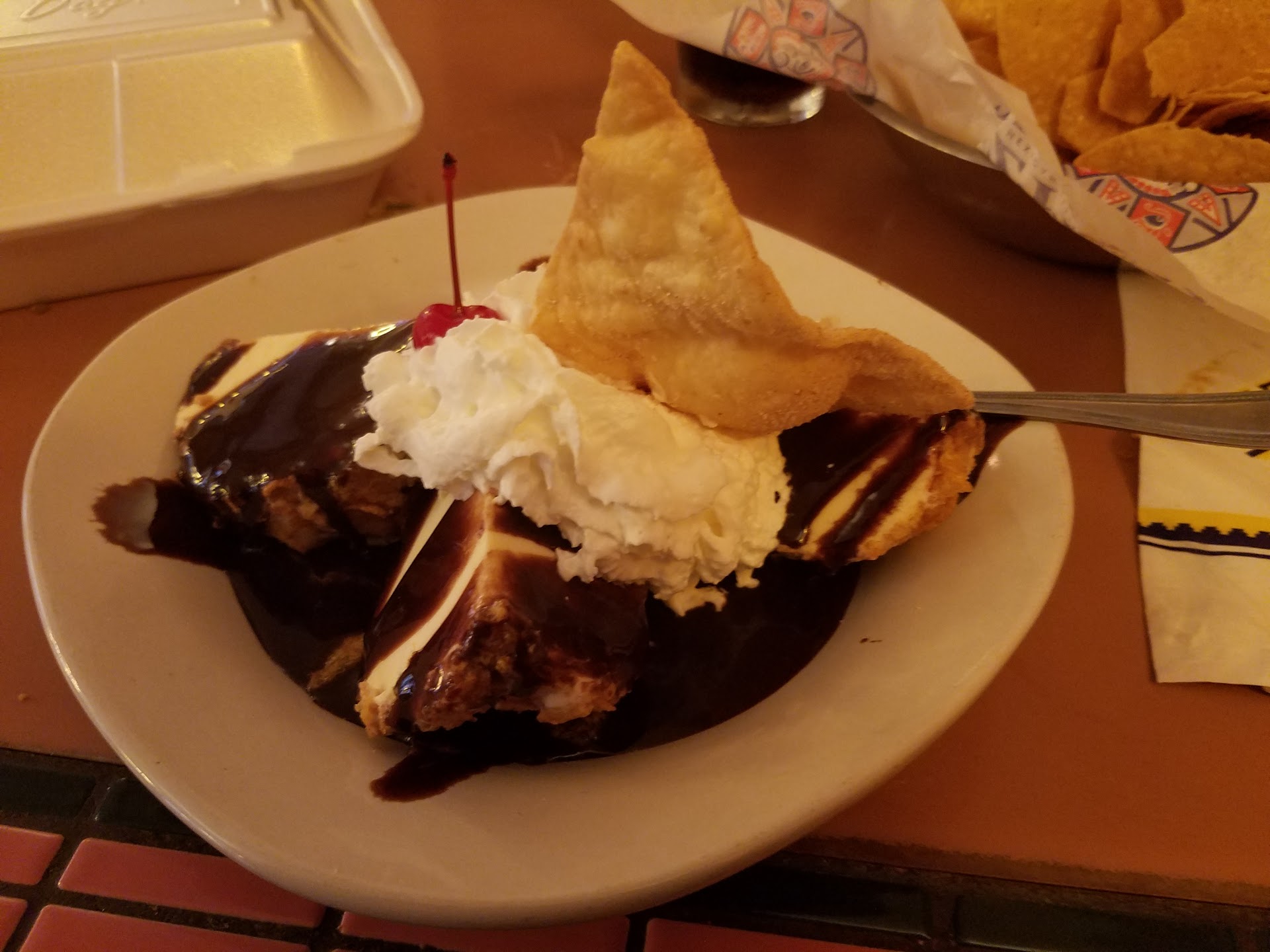 While the food may not be as authentic as straight down home Mexican food, and not as incredibly high class in terms of flavors as Cosme in NY or Topolobampo in Chicago, (tiny portions up there by the way) it's straight delicious for one such as myself. Let's start first off with service: I was greeted with a smile upon entrance and promptly given the requwlest of seating, between the bar and the resteraunt proper. (It was gloomy and showery so the outdoor seating was closed) However she said "Enjoy your meal!" In a pleasant way, I was not informed who would be my waiter, nor anything else. Just seated, an "Enjoy!" And wandered off back to the front. Not sure if that's just how it is, but it's not cool. However, my waiter Juan sold me on the service staff. Jovial, quick to address my needs, and definitely upbeat. Even asked the apparently rare question of, "would you like your appetizers first, or with the rest of your meal?" So extra props for you sir. Food: I ordered the chimisliders (beef) and the steak enchilada, and the fried ice cream. (They were out of the chocolate enchilada much to my disappointment. I guess I eat too slow. Haha.) The chimisliders were good, came out about 10 minutes after my order, was hot, well-seasoned and good all around, though nothing too special aside that it was "Good." The enchilada however exceeded my expectations. Some places just have a mushy squishy mess, drenched in sauce without a care. This place however was much much better. Each ingredient upon cutting it open was where it should be, no Pico all over the place, only on top and in a decorative fashion, the sauce was just right, each ingredient inside was done correctly and seasoned, the steak was cooked just right for the purposes of an enchilada, and overall, very VERY well done. And the size was... very appropriate for the price. I could only eat half of the thing. So it's not only a good reccomendation, but a good deal. (Unless you're a taco bell kind of person, where you can get like... 8 taco things for the same price... but then why are you at a nice resteraunt?) Finally dessert. What's a nice meal without something sweet? Speaking of, Juan just came by with a plastic bag for my meal, thank you. But yes. The fried ice cream.... well, I'm unsure as to what they coat the ice cream in, it's something akin to Corn Flakes or something to that extend. So it's not a fatty batter. It's quite a large amount of ice cream, I'd estimate about two-three large scoops. A little cheri, and a sopapilla on top. (Sopapilla are those fried puff pastry things coated in cinnamon sugar) so I'm definitely brushing my teeth when I get home. Environment? It's very.... Mexican? I guess? If you're here for the atmosphere, you won't get it. My particular seat was semi dark, but not too dark. It's got a ... Half shade down kind of lighting. Music is nice, and there's a good amount of walking space in the aisles.