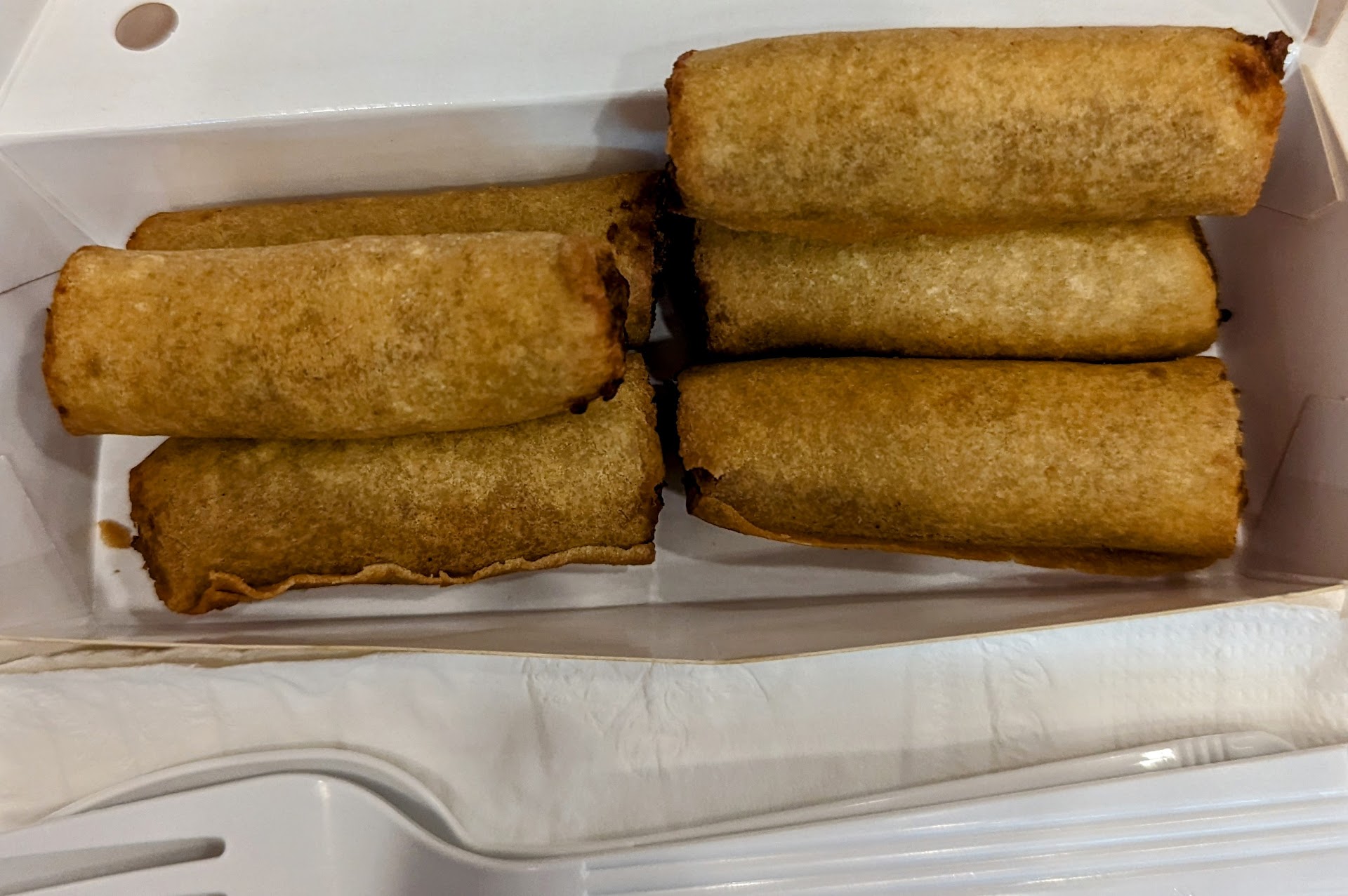 The overhead menu misrepresents the Lumpiang Shanghai as the size of normal egg rolls, but they are bite-size. See the pictures included here. "When you don't have time for anything better," you'll say thank...