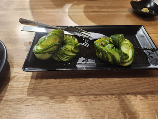The staff were quick to greet us and friendly. They gave us one of those paper ordering menus and a pen. The tables have QR codes if you want a picture menu and allergen info. They gave us water and small plates of ginger paste (for the dumpling sauce). After filling out the paper, they confirmed the order, printed it out, and taped it to the side of our table. They checked on us frequently and refilled our waters without asking.