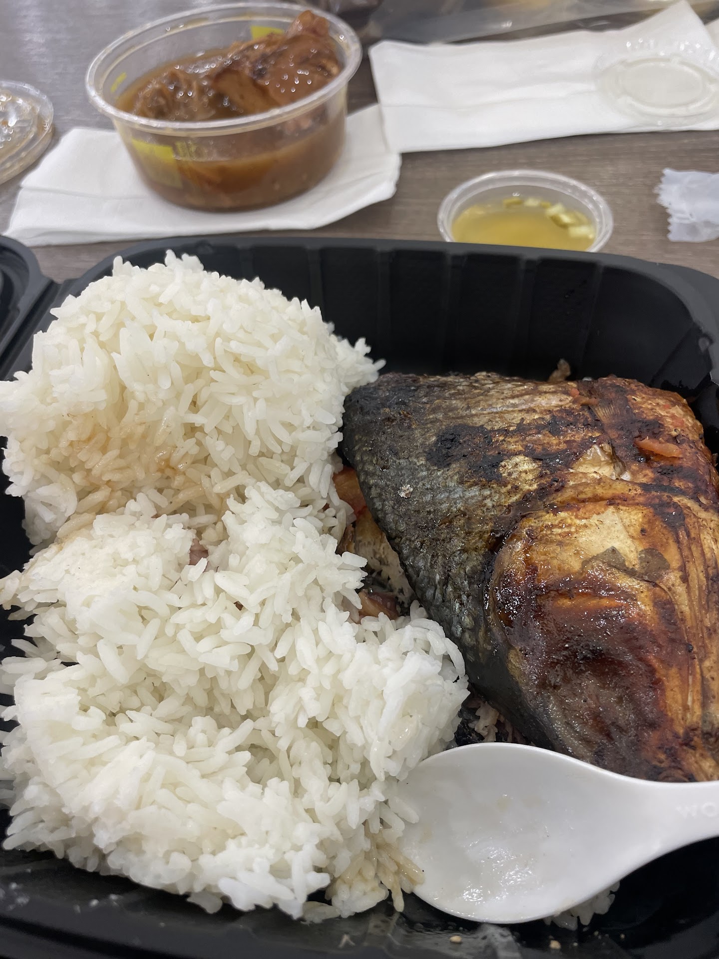 I got a #7 Milkfish with rice and a side of pork stew. I asked for a side of seasoned vinegar for dipping the fish in. Makes it yummier in my opinion.