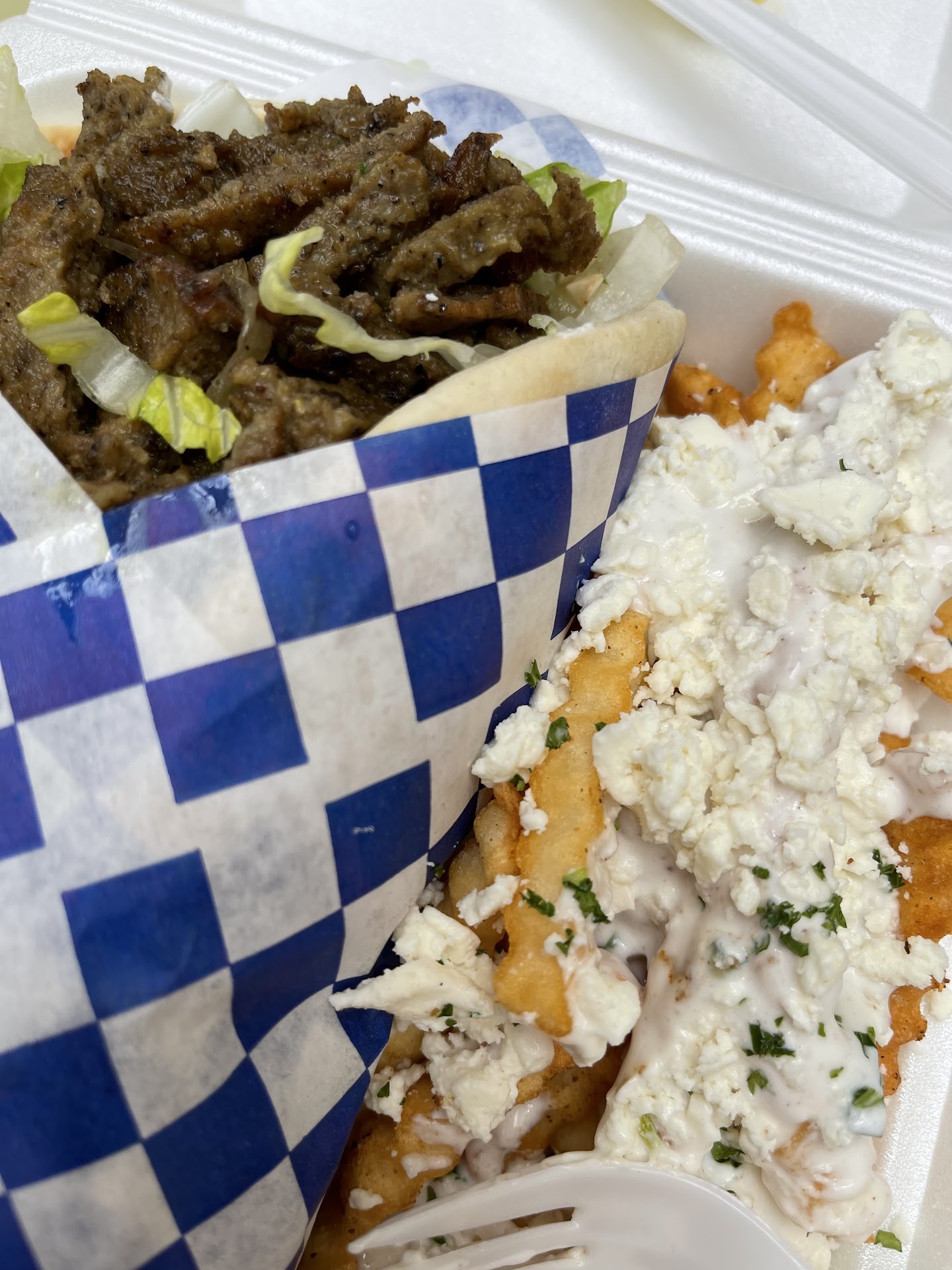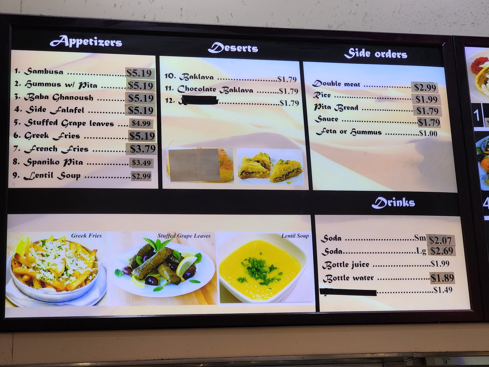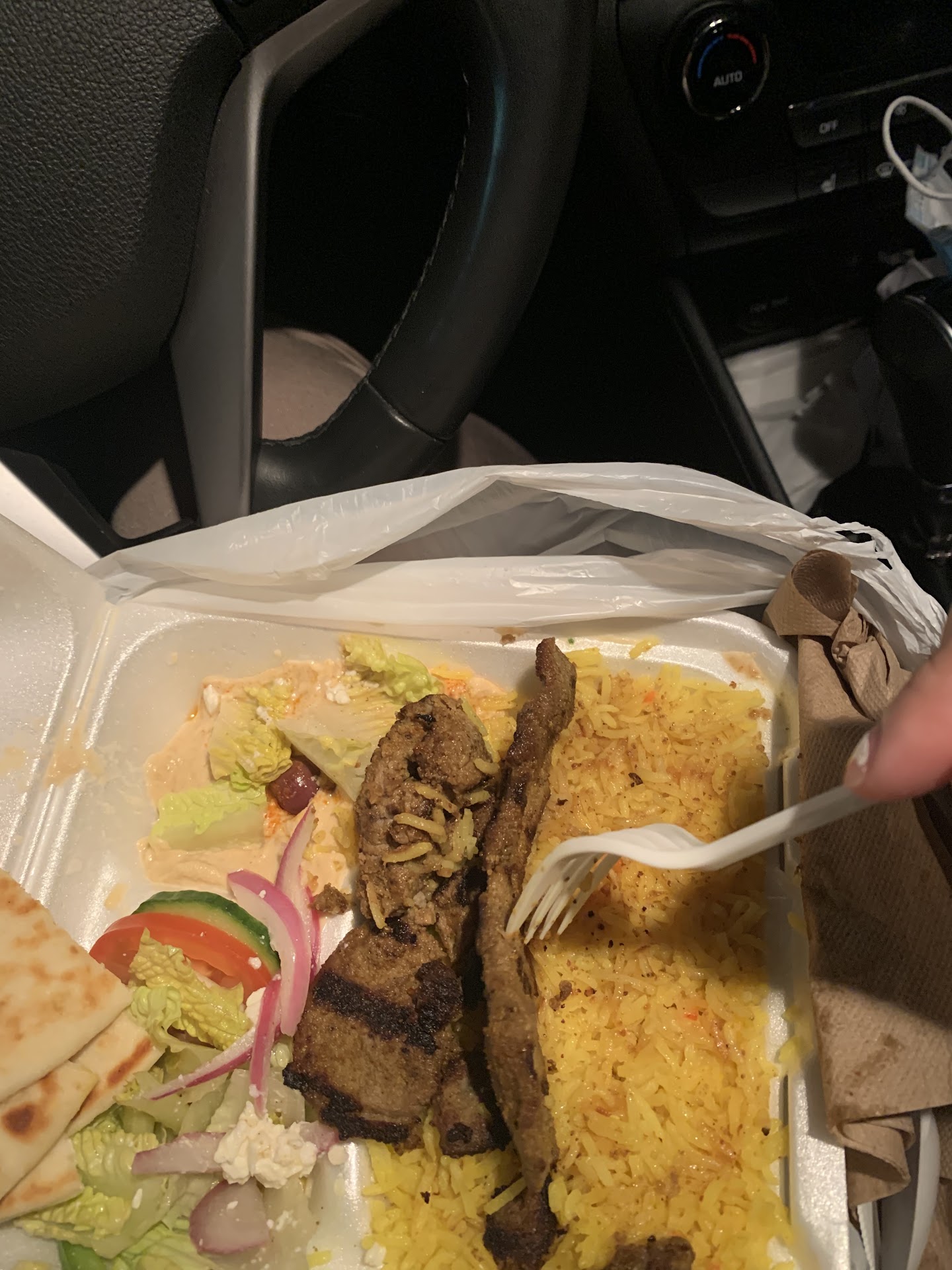 Read moreIt's Tuesday evening around 3pm so it's not too busy and had no line. My friend and I purchased two rice plates. One chicken kebab and one lamb. We were told to wait 15mins because they have to cook the lamb steak ($15). We said sure and seated ourselves near by. We waited about 15mins and went up to the counter to check how the food was coming along. The younger gentleman said they were still waiting. However, there were two plate of food near by. We figured it would be ready in the next few minutes so we waited by the counter. It took another 10mins and the gentleman said "your food is ready." He gave us two small container of sauce and handed us the plate of food that were sitting there (that we figured were ours). I opened up the lamb plate and was very disappointed (wished I had taken a picture. ) it wasn't even a steak! It looked like bits and pieces of lamb chopped up steak. I asked the man behind the counter if this was their lamb plate that they advertise. He said "yes." I said "the portion size is really small." He said "it's normally like that." I said okay...I'm not even sure what to say. He didn't even say sorry for the wait or anything. The food: definitely scored low. Seasoning was off....rice was bland. Hummus was okay. For the amount of money...you are better else where...anywhere else besides this place. If you go here....I hope you have a bether...