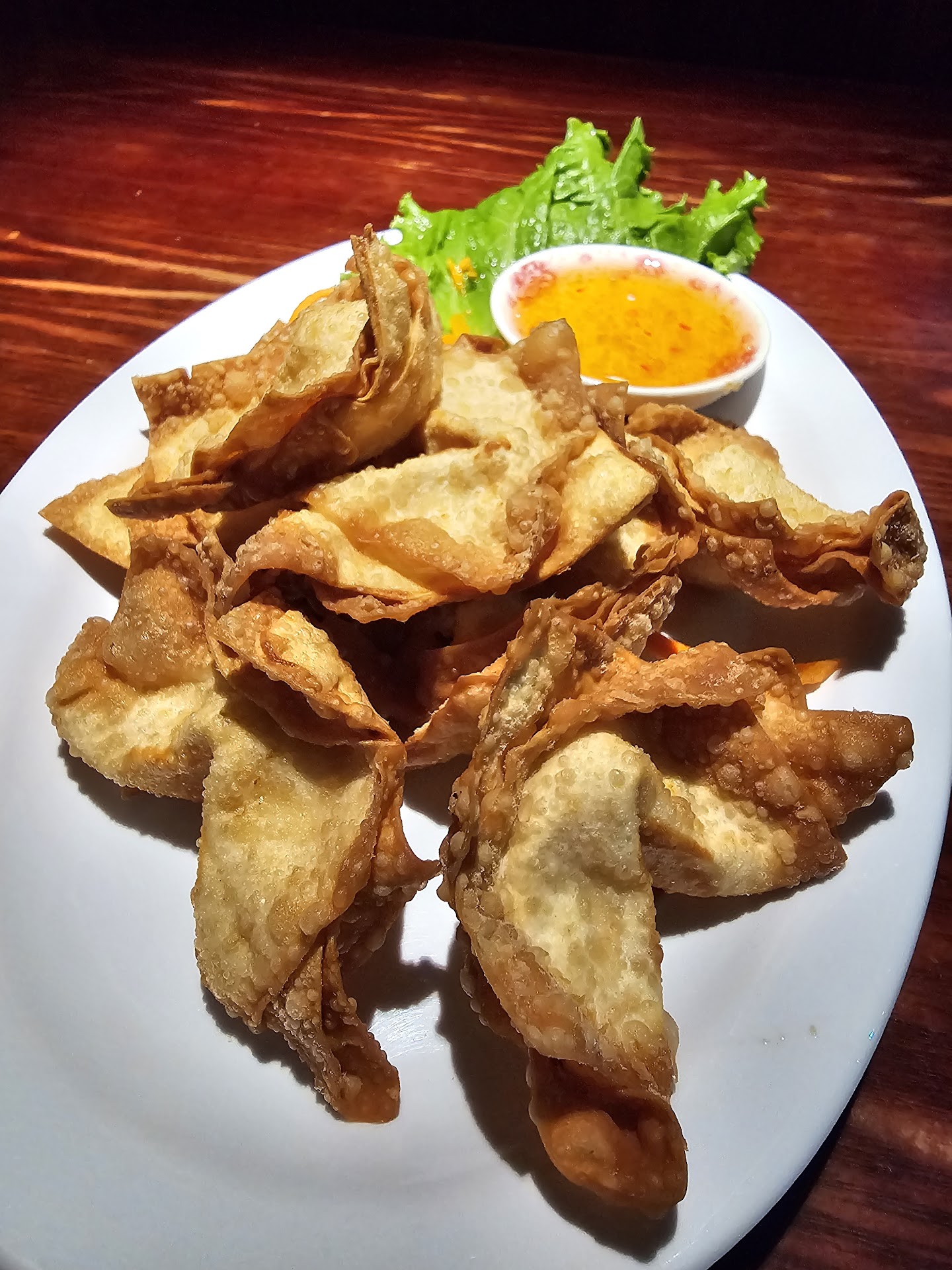 We went in for a late lunch to the tune of 50.00 .. Great table service...BUT... I ordered crab wonton, and beef sukiyaki... The wonton was made with imitation 🦀 and philidelphia cream cheese whip the cost for the 4 won ton is 7.00. It is Dungeness crab season in the Pacific Northwest so that seemed fair, we would expect real 🦀, not fake cheap whitefish in a crab wonton."..to say the least the cheese filling whip had zero crab pieces nor crab flavor and I mean zero hint of " crab" that might have been inside the wonton. The beef sukyaki is more of a pad woonsen and came with scrambled eggs instead of fried egg came on a plate,not in soup form but more of a bean curd noodle stir fry . The taste was good on the Thai sukiyaki, but the noodles were soggy. Just saying for 50 bucks for two people at lunch on a Tuesday I would expect. Way lower prices for the quality of food. After all glass noodles cost literally 1.95 for a huge pink or blue net pkg of them and these were clear not made in house but bought at cash and carry. Maybe it is because I'm a cook that I am picky..but when the menu says CRAB WONTON I expect crab not Costco/ WinCo/smart food imitation crab meat mixed with phildephia cream cheese inside . it was not worst crab wonton ever but I would call it more of a Philly cheese whip wonton not crab and the plum sauce is amazing..I buy the same brand I know it by taste..i guess what I'm saying is none of the food is home made in the kitchen it feels pre made and bought and for that price point I am ashamed..especially knowing they have an amaing kitchen to prep food in and all should be authenically made and not pre made from a store then sliced and throen in a fryer... I hope this is constructual critisim when you have the facility to produce real authentic Thai food but choose to buy cheap ingredients..iy shows.. We did love the atmosphere and the staff is very fast and efficient... who knows maybe the cook was just having an off day and bought pre made fake crab wonton instead of actually making them or maybe the real chef was off so they had to make due..... We are going try here again in a few...