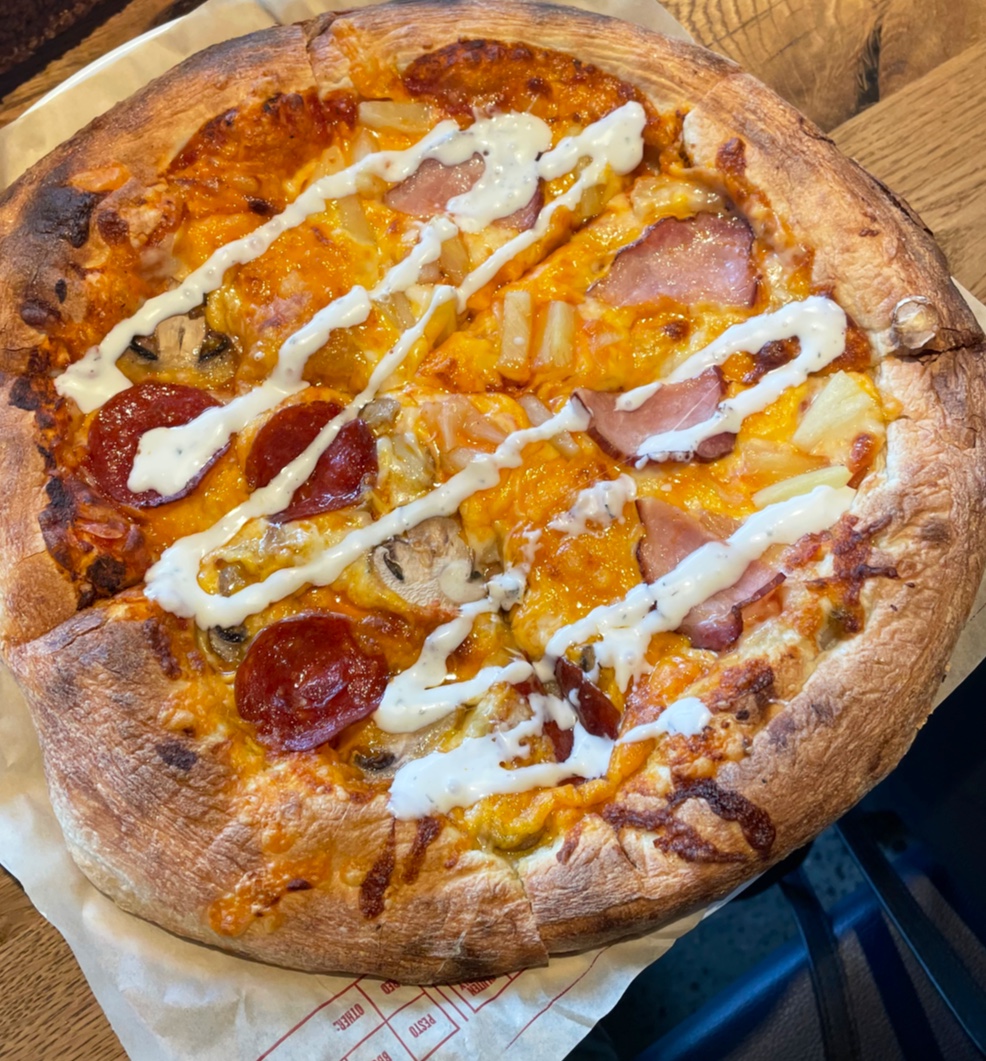 Unfortunately, the person in pj's who made my pizza grabbed the wrong cheese. I didn't notice it until I got back to work. I tried to eat it, but It was terribly pungent. I had to toss it. Mistakes happen, I completely understand. I've made my fair share.