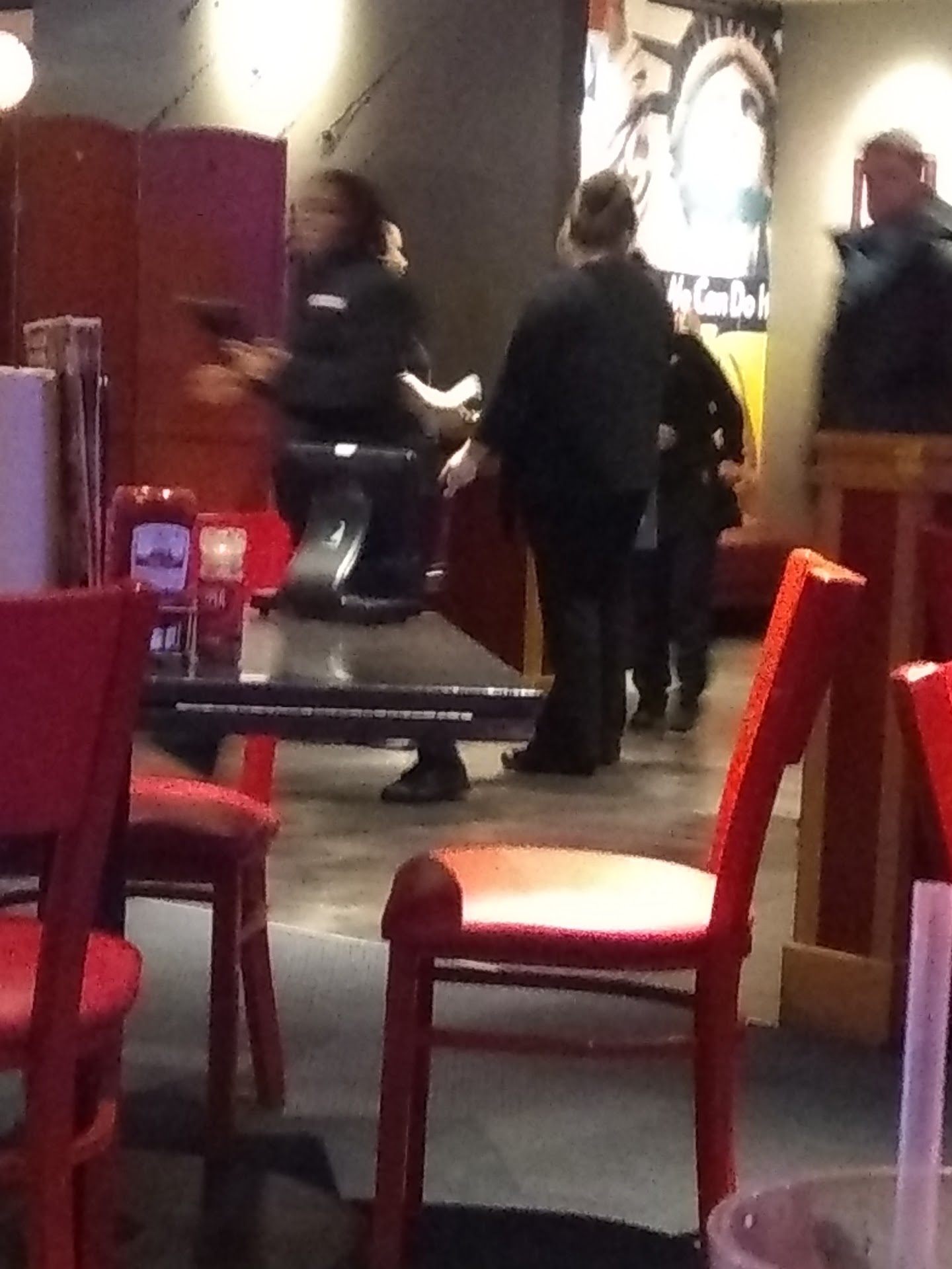 ALSO: as I sat there and had lunch, I sat by the ladies that were getting the delivery bags ready with food. (The manager said that they had moved away from sealing containers quite a while ago.) For over two hours I saw them put one staple on each side of large bags that left the HUGE center wide opened for a BIG hand to go into and feed from. Non of the containers going into the large bags had seals on them. To me, this is VERY UNSAFE and I can not recommend ANYONE having ANY food delivered from Red Robin. I will NEVER have it delivered...