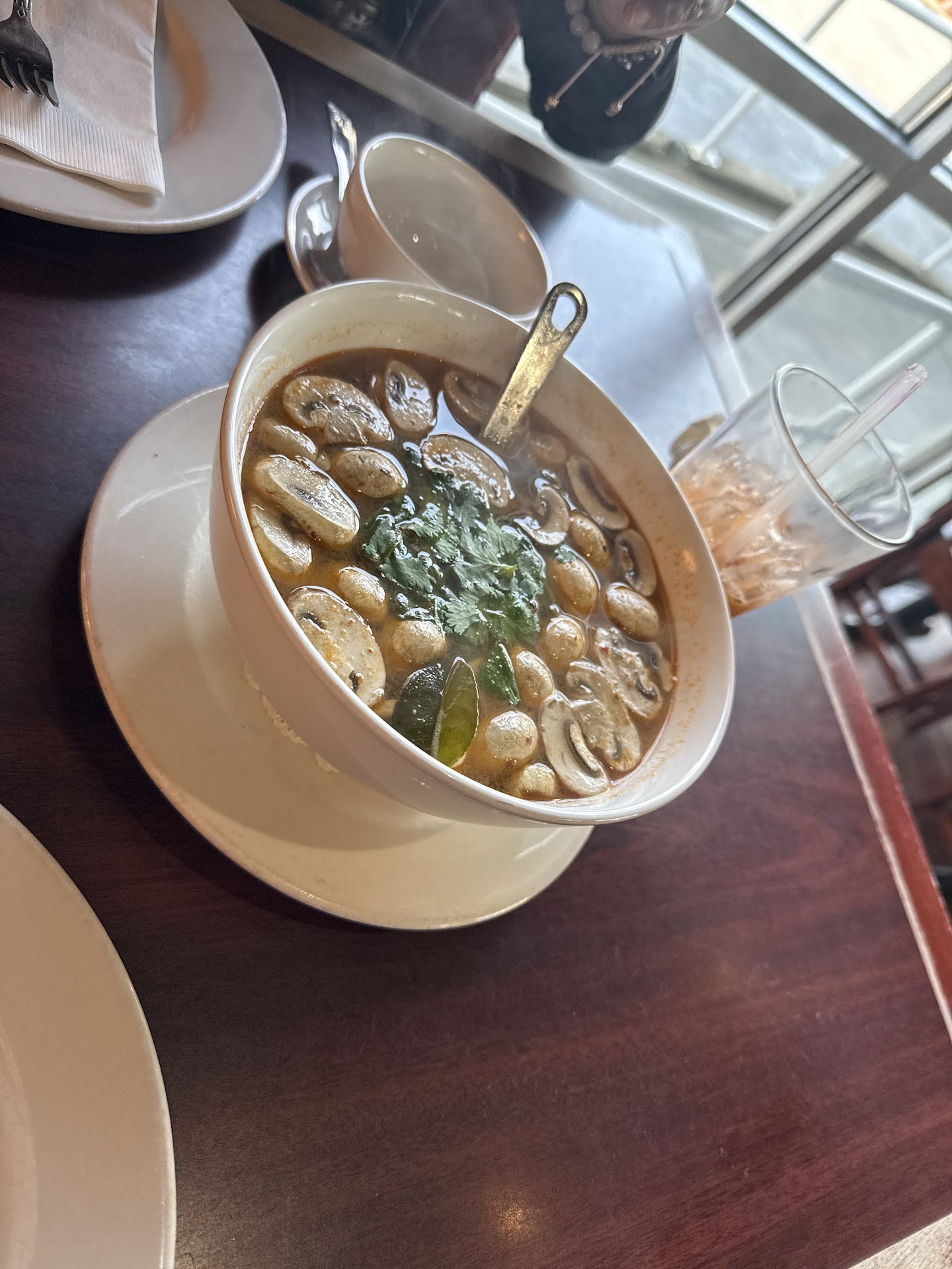 The menu was very typical of a Thai restaurant: noodles (Pad Thai, Pad See Ew, etc), salad (Larb), rice (Thai Fried Rice), curries (red, green, panang), and more. The menu wasnāt too big and there werenāt any deserts. For drinks, there was a small menu for wines and Thai coffee, Thai tea, and regular tea. Iād say everything was affordable, most menu items were in the $8-16 range.