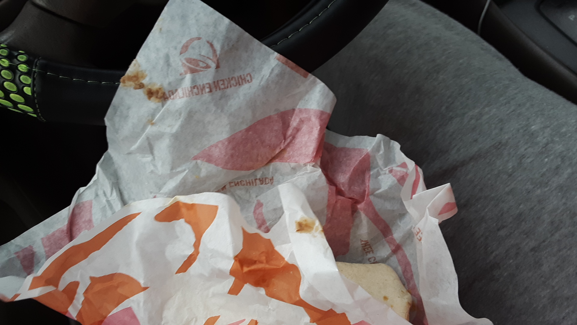 The only problem was it was a taco bell Kentucky fried chicken combo so we ordered coleslaw. They didn't provide a spoon, spork or any utensils. So we went back to the hotel and had to eat it using two coffee stir sticks... have you ever eaten coleslaw with two stir sticks? Hopefully not. It was difficult to say the least. That in the least was disappointing. I am one who doesn't think I should have to take an inventory prior to leaving the drive-thru.