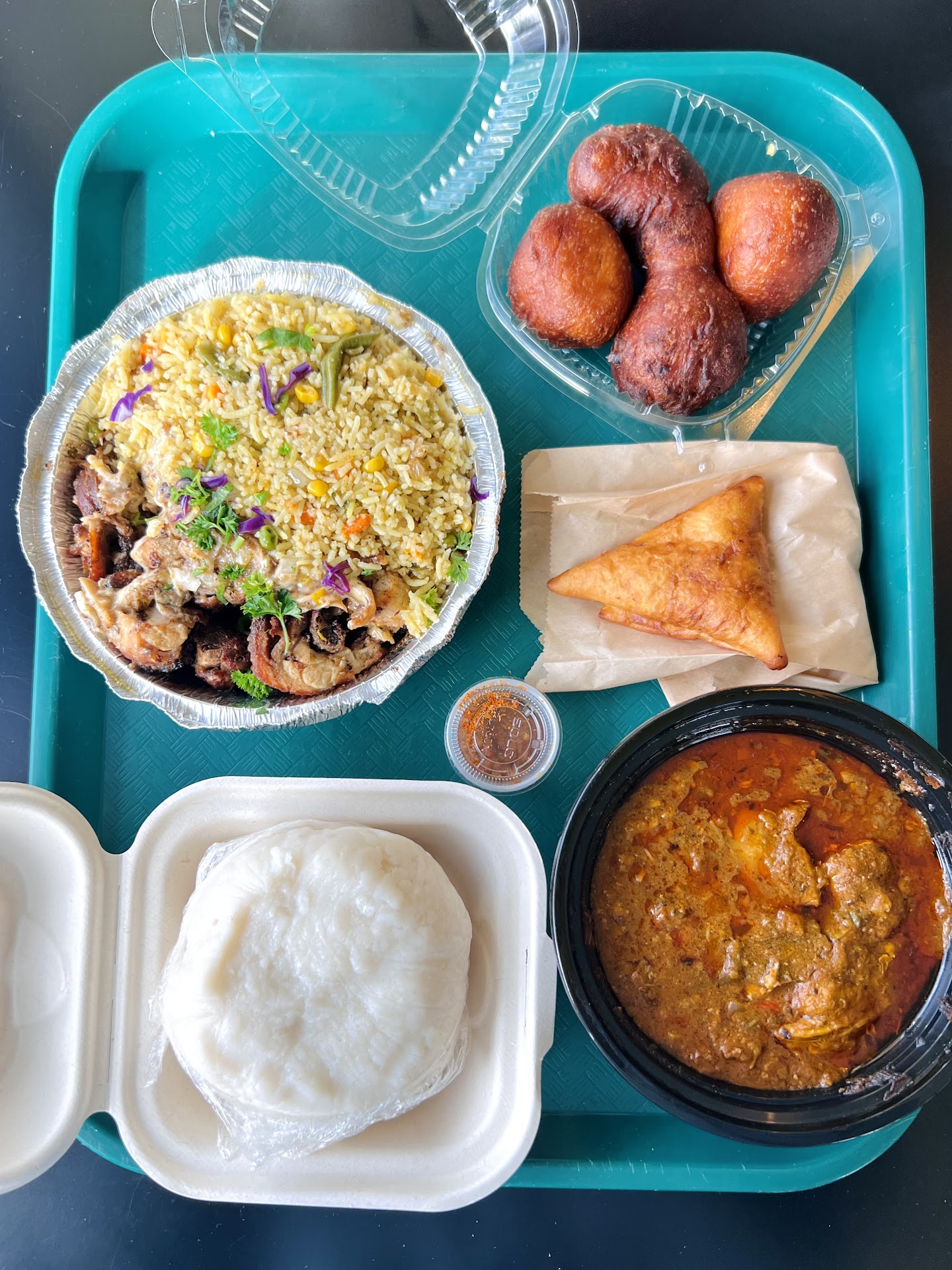 Ā Ā Ā Read moreBeen searching for Fufu in the Seattle area for the past year & finally discovered a place that has it! Tried it for the first time and it was slightly different from what I expected. We ordered the popular chicken palmnut soup, chicken mayo, beef samosa, and beignet.