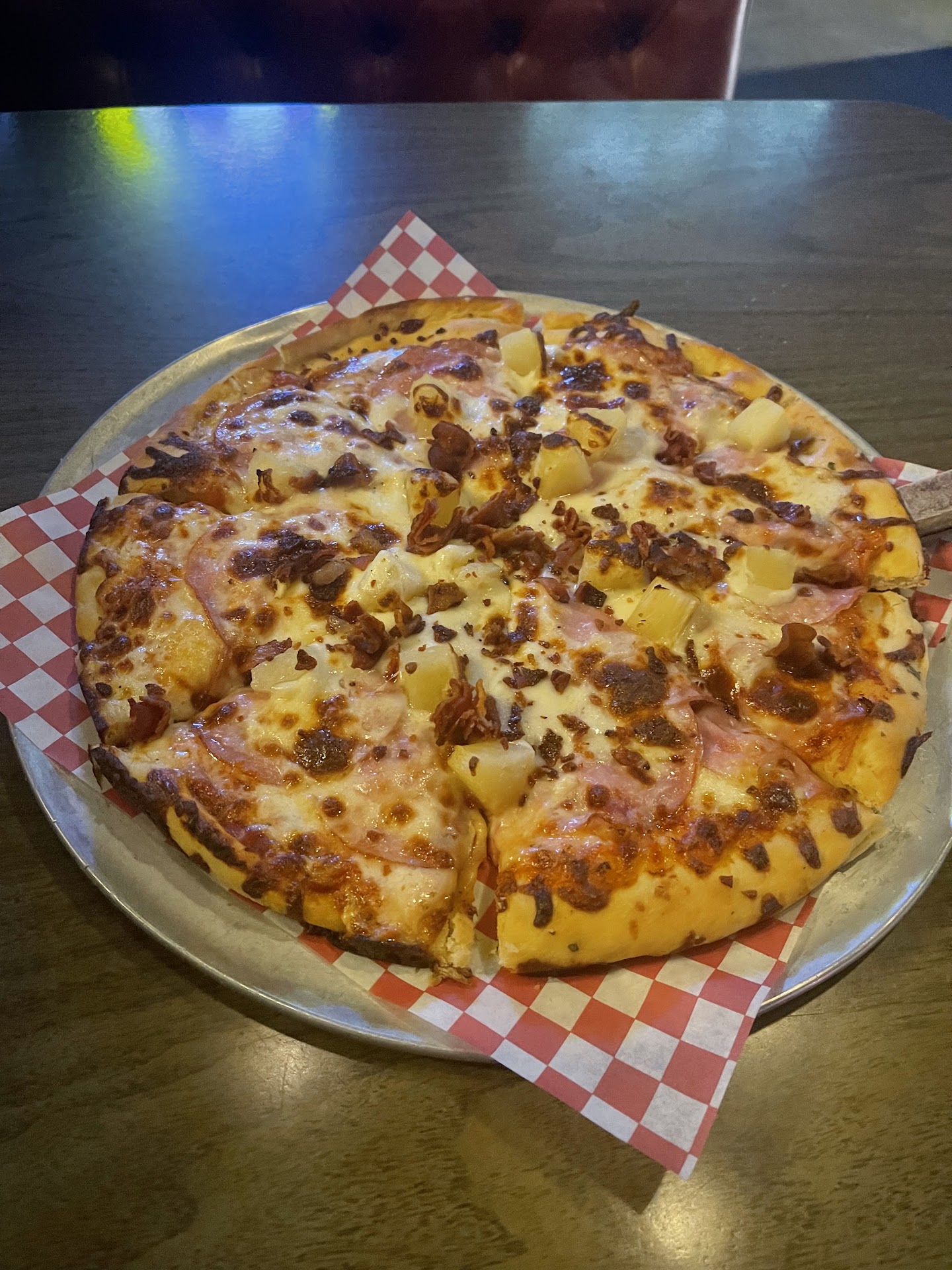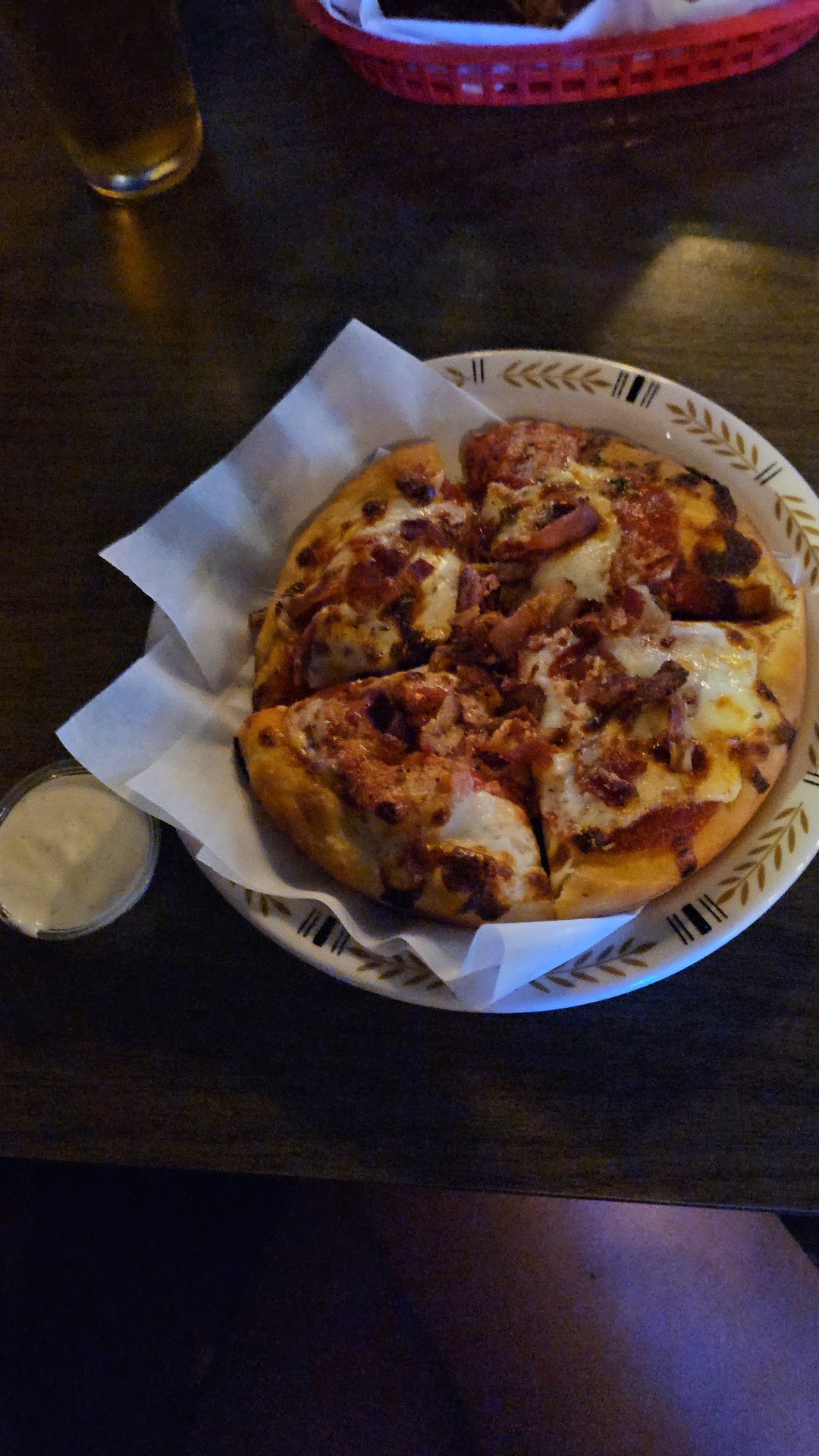 Pizza was good and fairly priced at $19 for a medium- more than enough for one person. Definitely more bar than restaurant. Music was loud, but not quite too loud. Also, Iâm pretty sure one of the âregularsâ yelled âHome Depot boysâ at a Hispanic family as he was leaving. So...