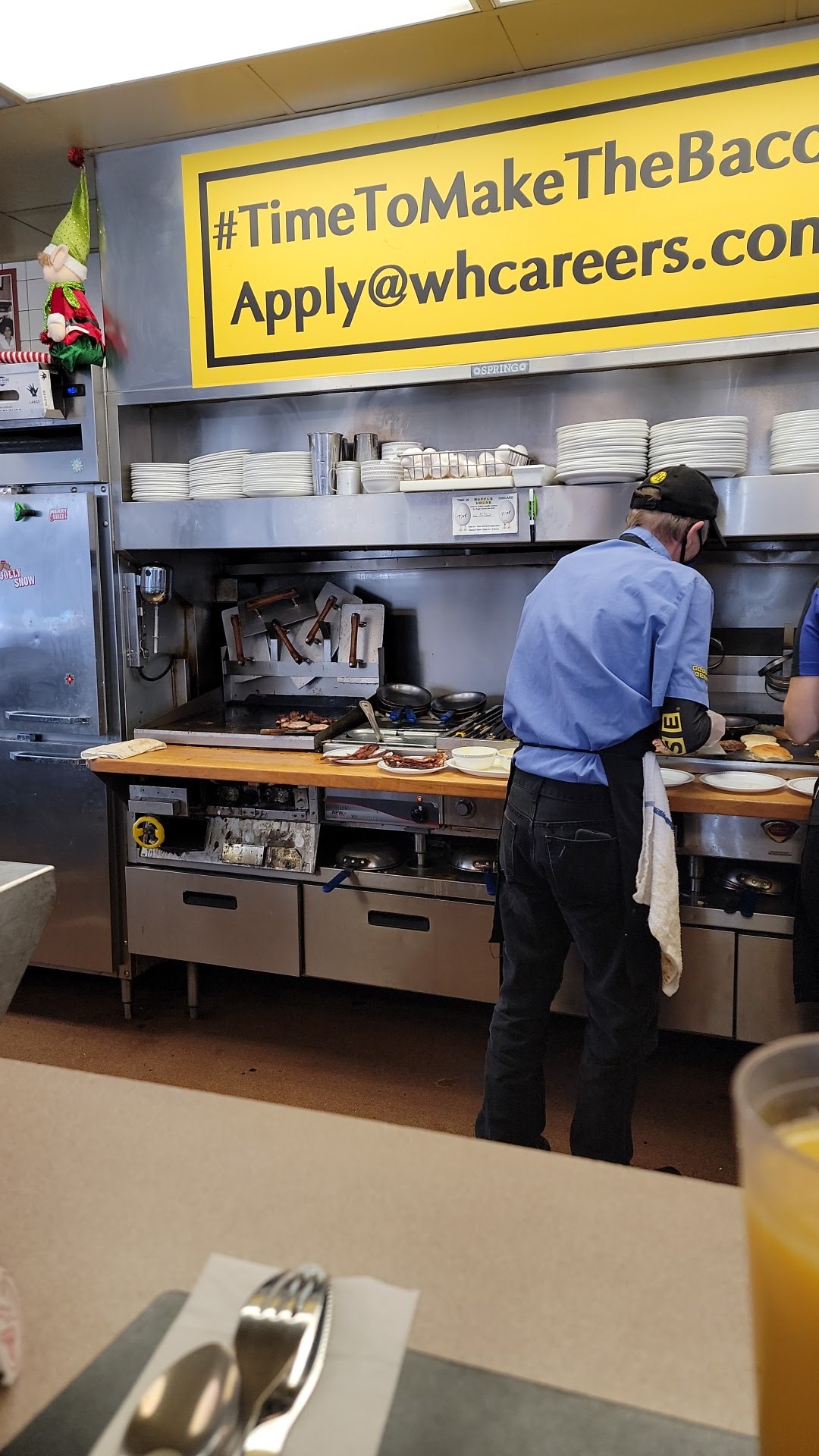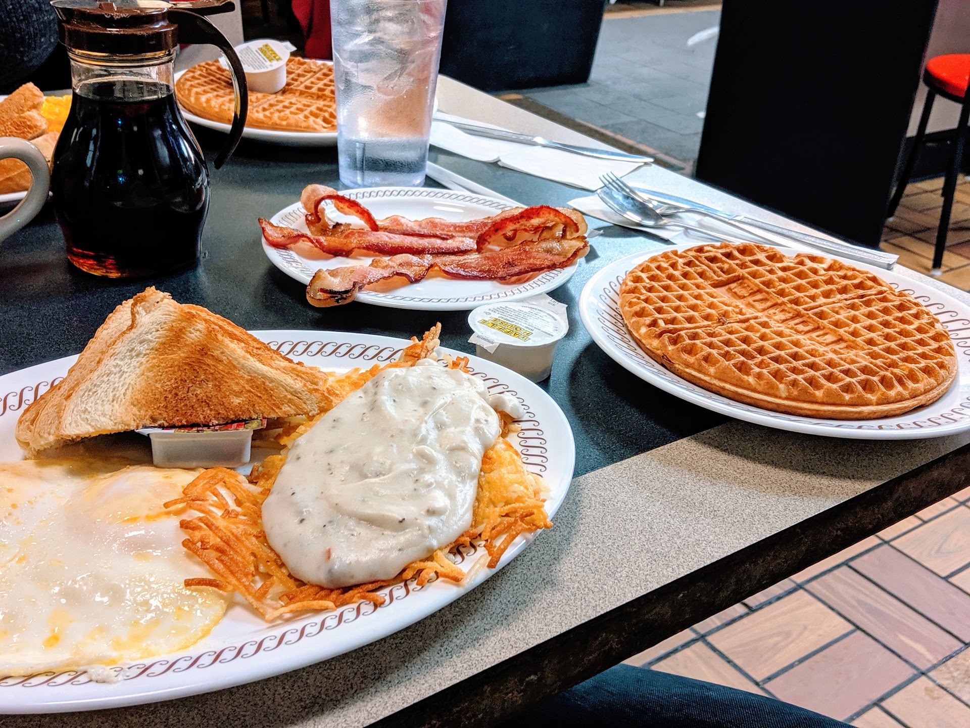 Read moreMy son and I went have breakfast this morning. The hostess took our name down and then walked off. Then we sat in some chairs waiting patiently for a booth to open up. Mind you they were busy but that's no excuse. She was sitting people that had just walked through the door while at least 3 other families were waiting. She also asked one of those families if they would like a table or a booth that had gotten there way after us. So I'm a very patient person but when I seen that she was totalling ignoring us I asked her if we could have a booth please and explained that I had seen her seat others walking through the door while we had to sit and wait. Her response was as soon as one becomes available. I then told her that there had plenty available before but you never offered to seat us. She FINALLY got us our booth but I came so close to getting up and going to the other Waffle House in Manchester. However my son said that he would rather wait. Our waitress was fantastic! Everything was clean and our food was really good!! So please find another hostess sufficiently and me more attentive to the customer's need. She clearly does not know how to multitask or treat the customer's in a...