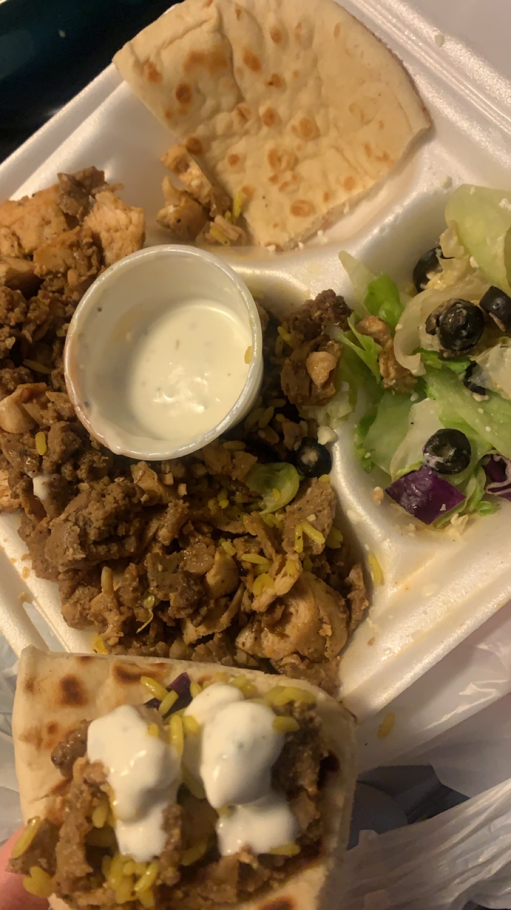 Read moreMaybe the pizzas and burgers are good but the Greek food was like "what if a hibachi takeaway made Greek food?" - a clamshell full of mostly rice with some meat covered in what I was told was tzatziki sauce. The salad was a tiny bit of lettuce, olives, and rancid-smelling cheese. (I am very queasy and my husband has thrown up twice.) The baklava tasted like there was peanut butter in the filling and if it is in fact made with phylo pastry, let's say they're not using it in the standard way. It's not the texture and crumb of usual baklava. The falafel was okay. But any food that you just rent for an hour...