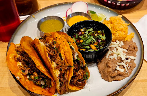 The guys working were nice, fast, and made delicious food! I tried at least a bite of everything while there. I enjoyed all the items on the sampler but favored the beef over the chicken. The star of the show was 100% the Birria!! Delicious! The consomme was the best I've had so far, from any place in town. It is very flavorful and is the only consomme in town that I felt was not too greasy. The tomotilo green sauce was also top-notch. I asked for 3 more to take home with it.