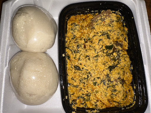 Lastly was the fufu & egusi soup. The egusi was just OK in flavor and texture. There were some dried fish meat and bones that added flavor but could be a choking hazard. The texture was like soft tofu. I DONT CARE what people say but I think it’s ridiculous and dangerous to try and swallow the soup dipped fufu whole. The fufu was like a slightly elastic doughy mashed potato ball with a mild potato flavor. It paired well with the soup. But overall was not a fan of the egusi soup. I can’t really describe the flavors I just know I didn’t enjoy it.