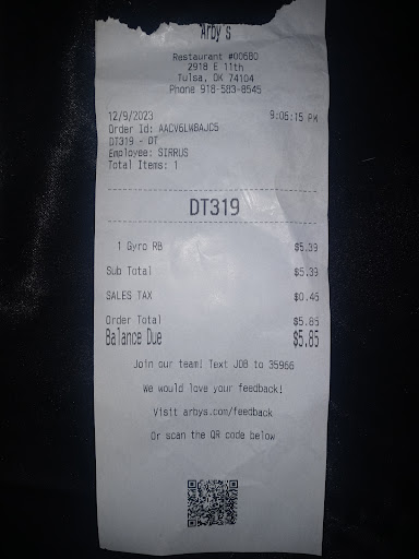 Read moreIt took forever to get our food and seeing as how they just stood around playing and talking to each other I figure that's why. I heard entire conversations! I think the lady who may have been the manager she can't control the staff and I sat and watched her wipe down those trays they put our food on with just a rag on each tray then sat them up on counter to go to the next person. I took pictures of how thin and hard the chicken was. The cheese wasn't even melted and the food was ice cold! They weren't friendly either. I'll NEVER go back to that Arbys again! Sadly I've never had a problem before that but it had been months since I'd been in there so I'm guessing...