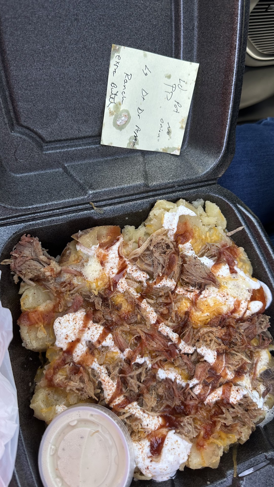 Went in for the first time today.. No t impressed. Ordered a loaded baked potato with chili. When i asked if i could get fried okra, i was met with a swift and rude response of "we dont serve no fried foods" (BTW, what self respecting BBQ joint doesnt have okra?) After the restaurant atmosphere went down hill, i changed my order togo. -Got home to a "meal" that was on par with Wal-Mart deli food. There were 2 people in the shop and still my order was incorrect. Missing ingredients i specifically asked for, i was entirely disappointed. I believe the same people that call this BBQ, say nachos is mexican food. BOO! 👎 👎 👎 👎 👎 Shouldve went to Elmers