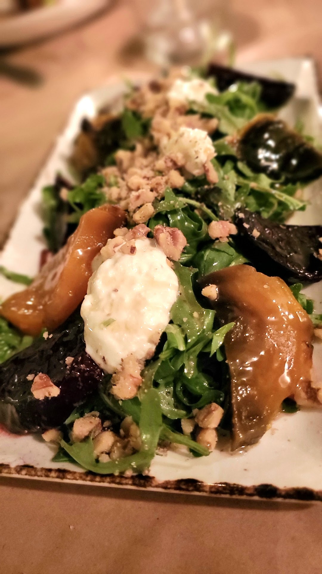 Atmosphere: 3 stars instead of 5 because of where we sat. It's a cute restaurant, but our friend's made a reservation a week in advance and we somehow got the worst seat in the house in my opinion. The table right next to the kitchen door, that was constantly swinging open. There were about 3 empty tables in the room we were in, with one being a table right next to us (not right next to the kitchen) that was empty the entire time we were there.
