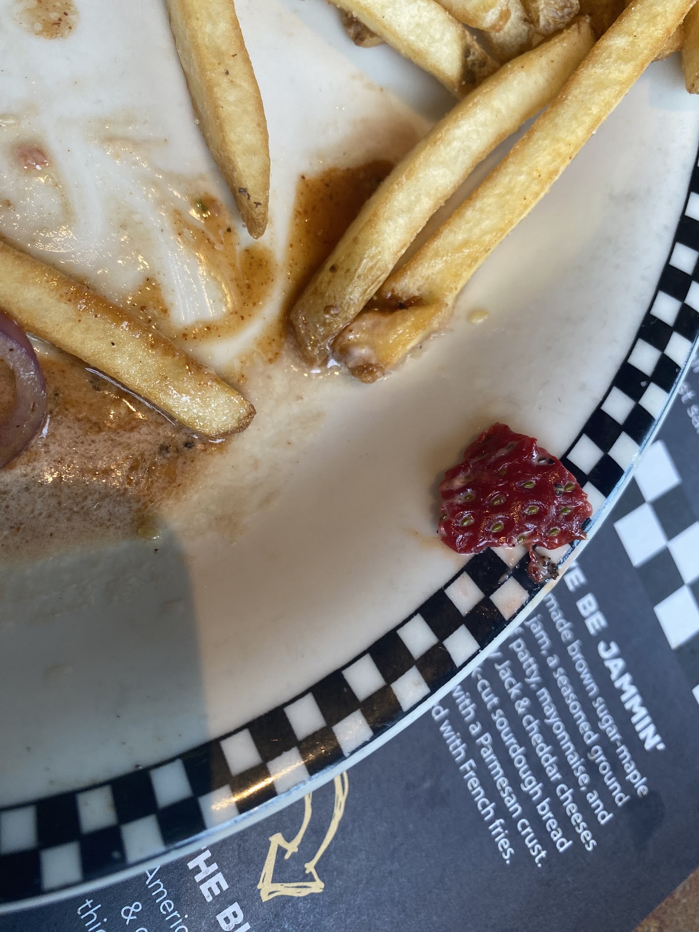 Read moreI have dined here several times within the past 6 months and every time the food and service has been great. Except this last time. I ordered a burger and as soon as it got to the table I immediately notice a metal shaving attached to the knife stuck in the burger. Presumably this was from some type of metal scrub brush for washing dishes. I let the waitress know and she offered to have the burger remade. I didn’t want to risk ingesting other metal particles that may have been inside the burger, so I accepted this offer and patiently waited for the new burger. After some time, the new burger came out and everything was tasting great. Until about half way through the new burger, I found part of a strawberry mixed in with the toppings. Now this was just a regular burger no specialty strawberry jam burger. Luckily, I am not allergic to strawberries so it wasn’t a huge deal and I proceeded to finish my burger. When the waitress came with the check, I alerted her again I found an unexpected item in my food. I was already half expecting the food to be comped considering I had found a metal shaving the first time! She said she would talk to someone about having the food comped before I even mentioned it. She let me know she was unable to have anyone comp the food and that I could ask for the manager when I went to pay. So when we went up to pay and the cashier asked me how the food was, I told her exactly what I experienced and she asked if I wanted to speak with the manager and I said yes. She came back with no manager and claimed they were on break at the moment. She asked for my name and number and told me the manager would be in contact with me to potentially work something out. I honestly don’t expect a call at this point. We will not be...