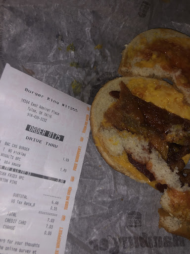 Read moreThe 16504 E Admiral Burger King gave me the worst experience I have ever had at a BK. I was trying to use the App and said I wanted to apply the coupon for the Bacon King that my husband ordered to bring it down from $11.09 to $8.99 but the employee got confused and thought I wanted a 2nd Bacon King for myself. When I said, No that was supposed to be applied to the existing Bacon King, but I want the smaller Bacon Cheeseburger. I asked if the tall employee with a large beard who was the only employee without a name tag in the store to have a manager to come override the mistake. The employee got frustrated, said no on getting a manager, and voided the whole transaction and started over, destroying my coupon with the void. He said, Show me the coupon again. I said, I don't believe I can, because you already entered the 6-digit number, but I'll try. Nope, the App is now missing that Bacon King Coupon, because it's Already Been Used, so NOW we have to pay full price?!? He didn't say anything. I brought up my BK App number to at least get the points when we paid full price. I would bet the employee didn't want to call a manager, because he would be in trouble for costing that franchise location money, because I believe the app discounts are covered by Burger King's Corporate Office, but if an employee messes up the App and an override occurs without being able to use the coupon, the Franchisee probably gets hit on their revenue. Thankfully there was a Contact Us in the App, and they are sending me a digital coupon, but I won't go back to 16504 Admiral. I have never had any employee at any store whether food or other type location refuse to get a manager, and refuse to help me. I would have asked for his name, but I didn't want anything bad to happen to my food behind the counter before I received it in...